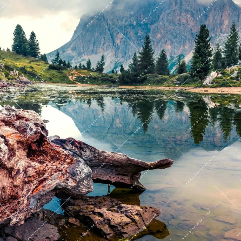 Das Wandbild mit dem Motiv Bergsee im Sommer aus der Kategorie Landschaften erwirkt in der Größe Maße einen ganz besonderen Eindruck auf den Betrachter und erschafft eine neue Raumwirkung, denn Berge, Bergsee, See, Wasserspiegelung, Gebirge, Dolomiten, Italien, Wanderwege, wandern, Wasser, Natur vereinen sich in diesem Wandbild im XXL-Format. Dieses XXL Wandbild ist ein Statement und ein Eyecatcher, den man nicht übersehen kann.