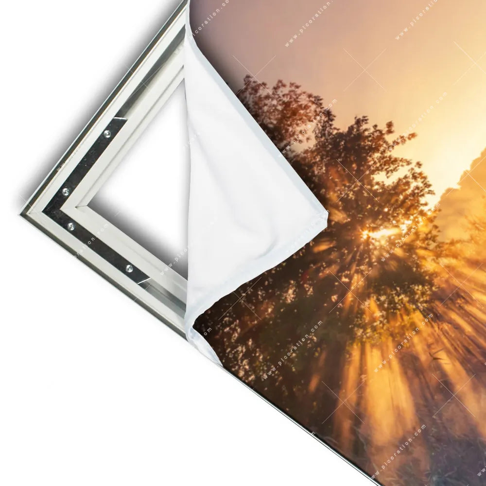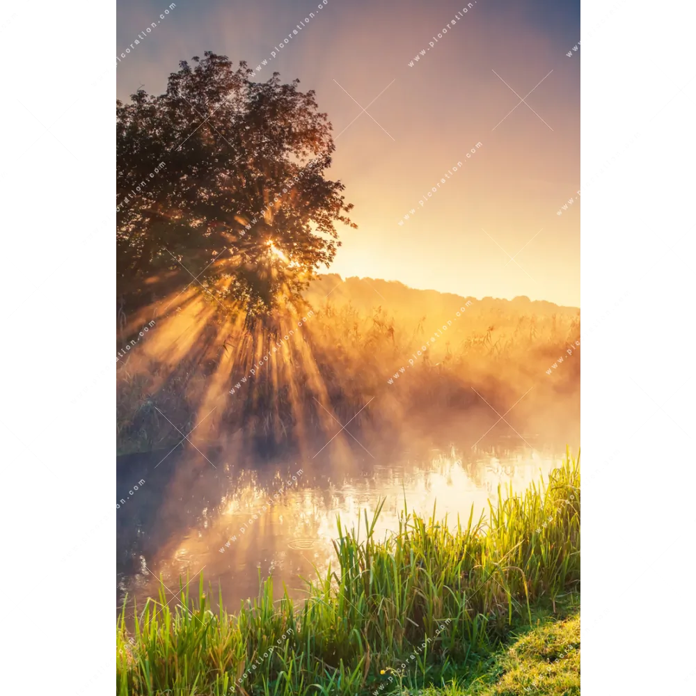 Das XXL Wandbild Sonnenstrahlen am Fluss der Kategorie Landschaften im Hochformat ist ein beeindruckender Blickfang in Ihrem Arzt - Praxis, Bar - Gastronomie, Büro - Kanzlei, Wohnzimmer - Schlafzimmer, Küche - Esszimmer. Je nach Größe Maße kann es ein wandfüllendes Kunstwerk werden oder einen Akzent setzen. Gerade in größeren Räumen, wie Wohn-, Empfangs- oder Besprechungsräumen, bietet sich das Hochformat an, um die Architektur zu betonen und den Raum zu füllen. Es lässt den Raum höher und beeindruckend erscheinen und schafft eine angenehme und inspirierende Atmosphäre.