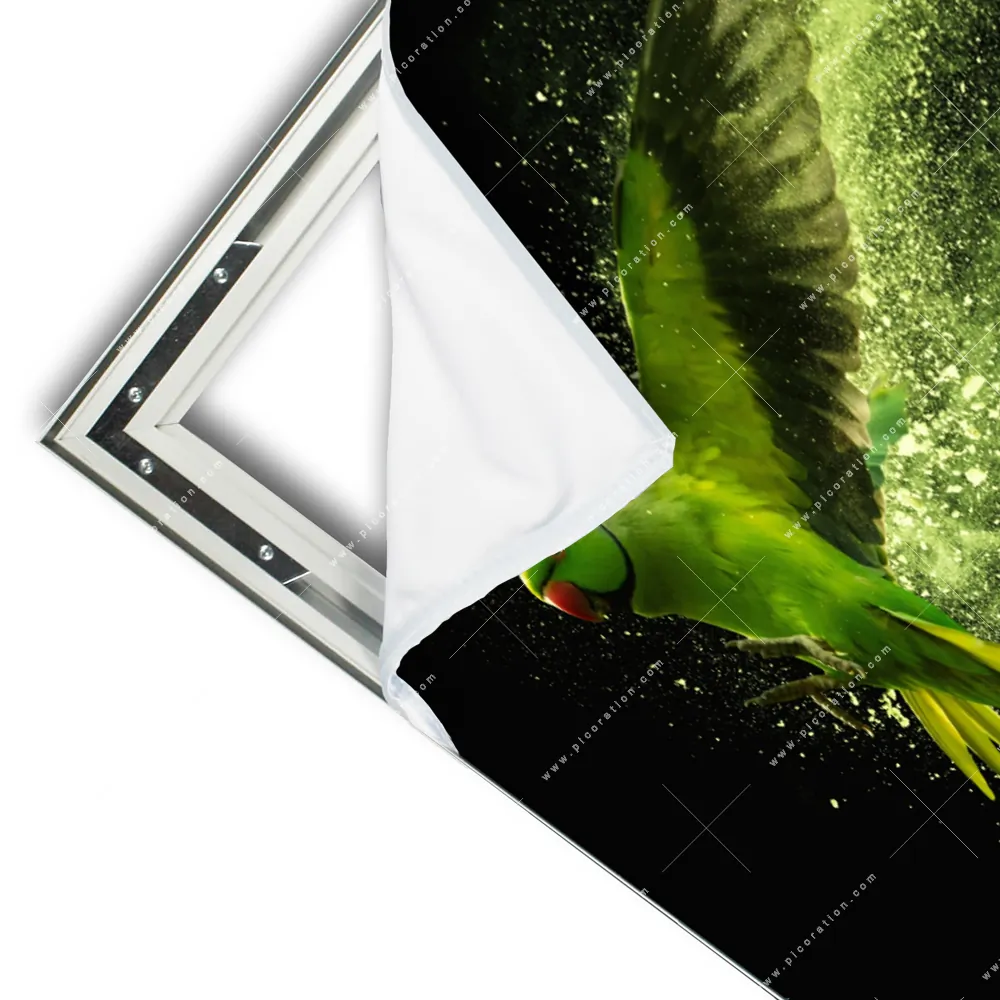 Beeindruckendes XXL Wandbild mit dem Motiv Papagei - grüne Farbexplosion