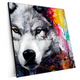 XXL-Wandbild | Wolf mit bunten Farbspritzern | Schmal