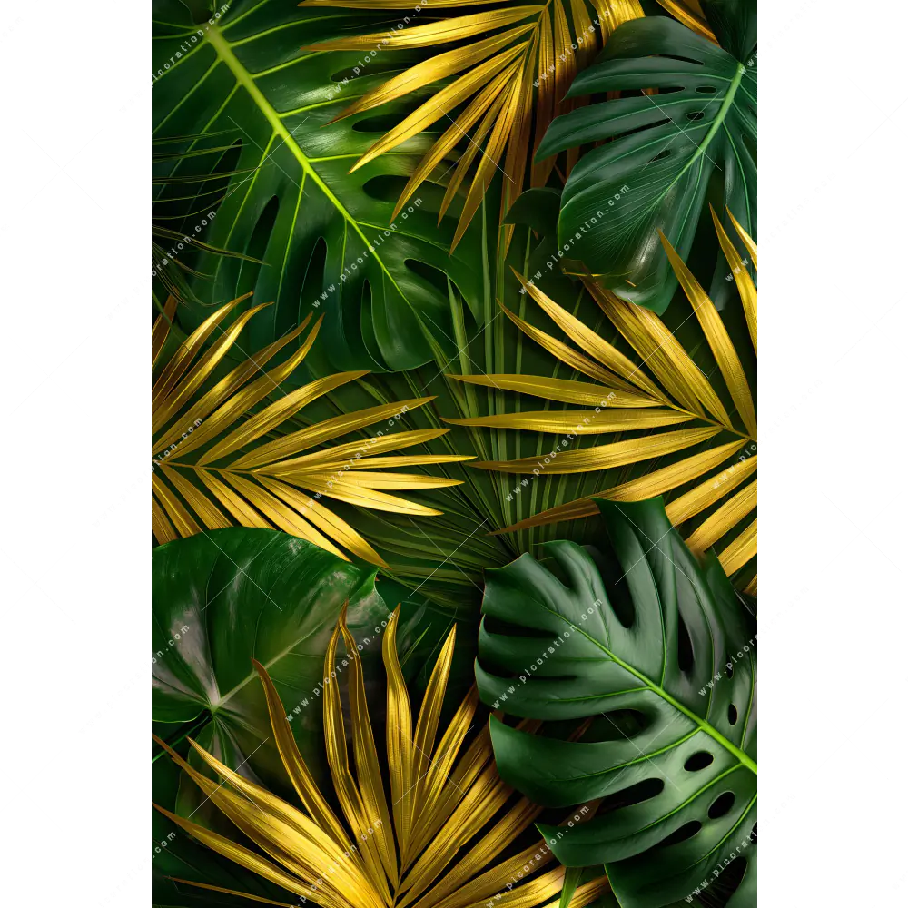 LED-Wandbild | Blätter Gold Grün | Hochformat