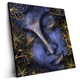 Kopf des Buddhas in Blau mit goldenen Akzenten als LED-Wandbild verleiht dem Raumen einen faszinierenden Zauber