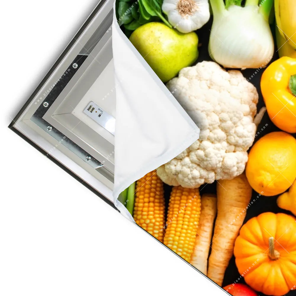 Frisches Gemüse und Früchte als LED-Wandbild verleiht dem Raumen einen faszinierenden Zauber