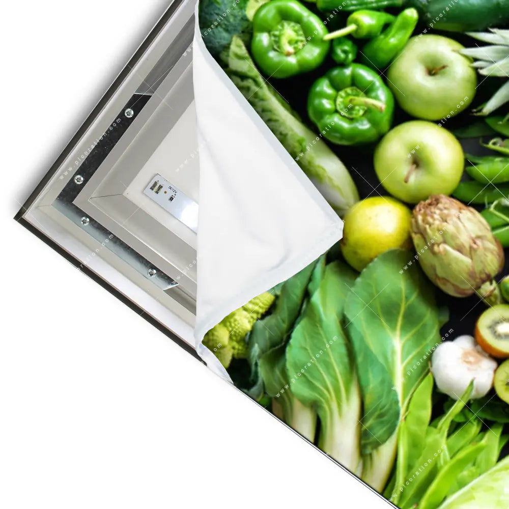 Bunte Vitaminreiche Lebensmittel als Wandbild mit LED-Beleuchtung – einfach beeindruckend