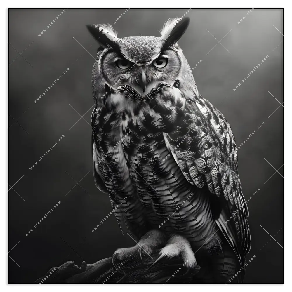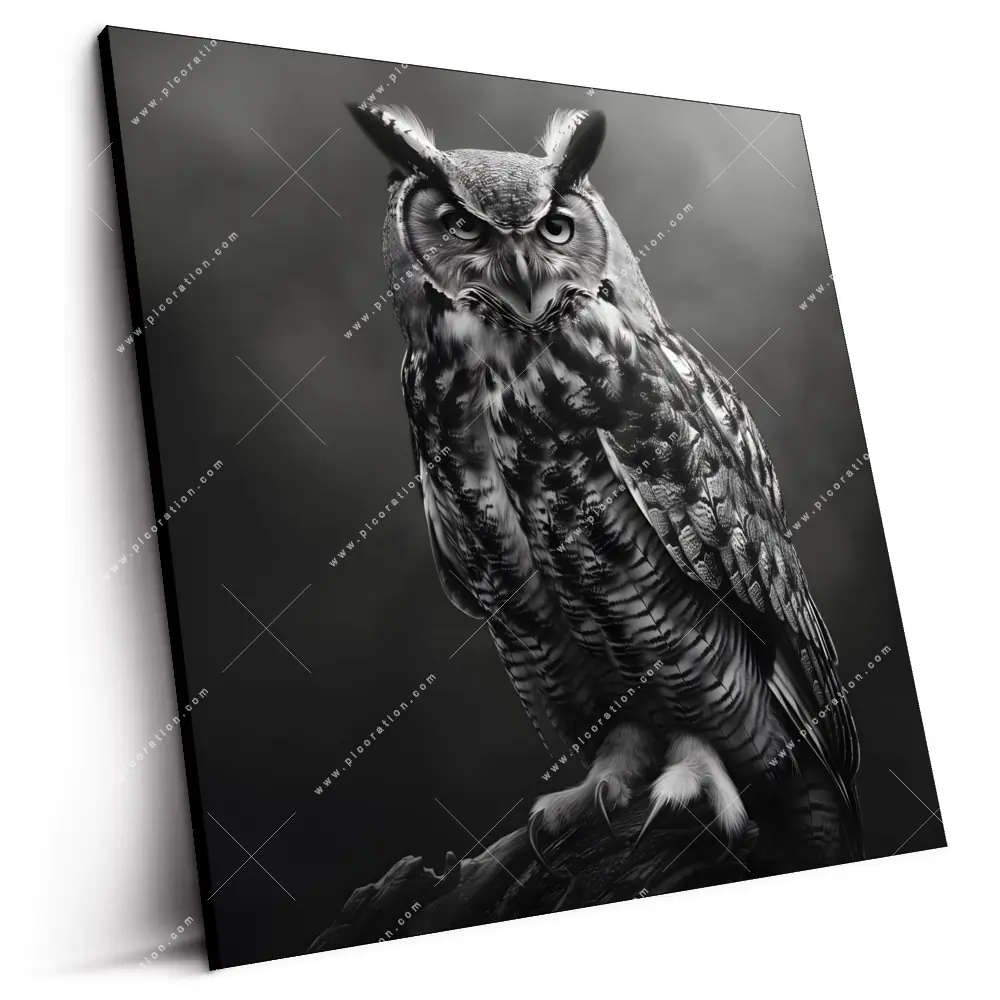 LED-Wandbild | Düstere Eleganz der Eule | Quadrat