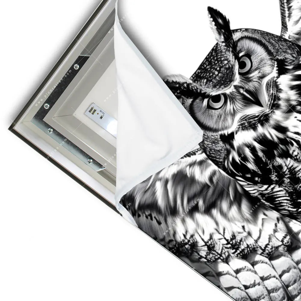 Das LED Wandbild mit dem Motiv Eule auf Ast der Kategorie Tierwelt ist ein besonders beeindruckendes Wandbild mit LED-Beleuchtung, denn Weiß-schwarze Eulenpracht wirkt durch die feinen LED´s hinter der textilen Oberfläche des Wandbildes noch intensiver und faszinierender auf den Betrachter. Unterstützt wird diese Wirkung des Wandbildes durch das Hochformat, welches in den Größen Maße zur Verfügung steht, um sich optimal an Ihre Wand anzuschmiegen und dem Raum ein neues Flair zu verleihen.