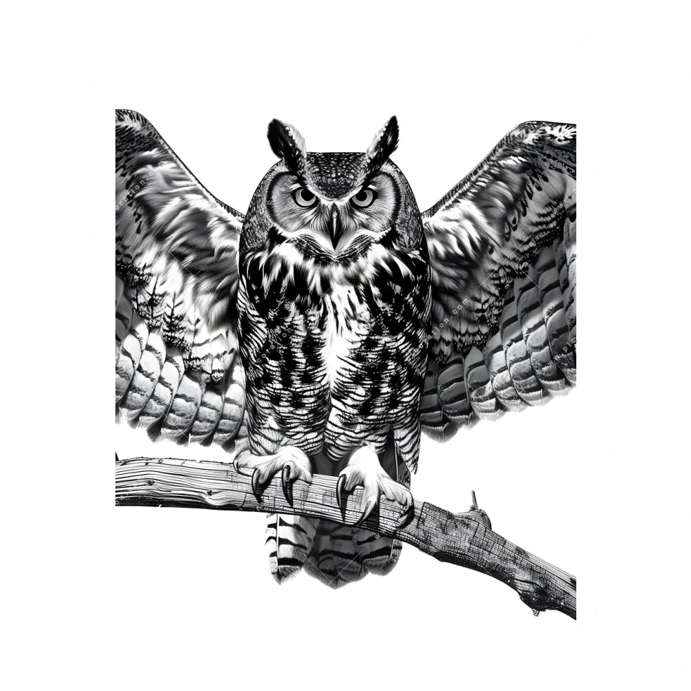 Eule mit ausgebreiteten Flügeln als LED-Wandbild verleiht dem Raumen einen faszinierenden Zauber