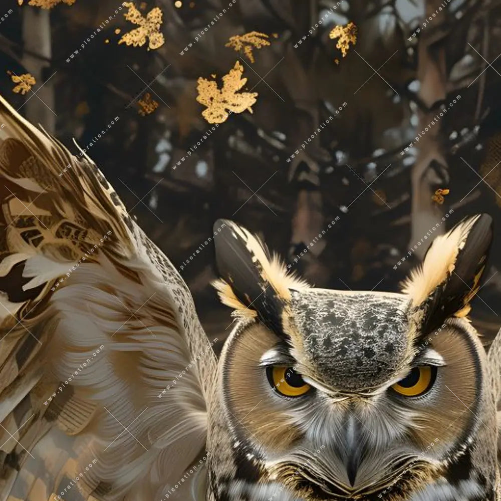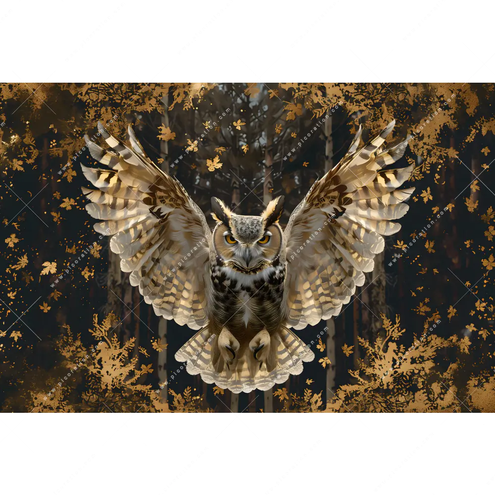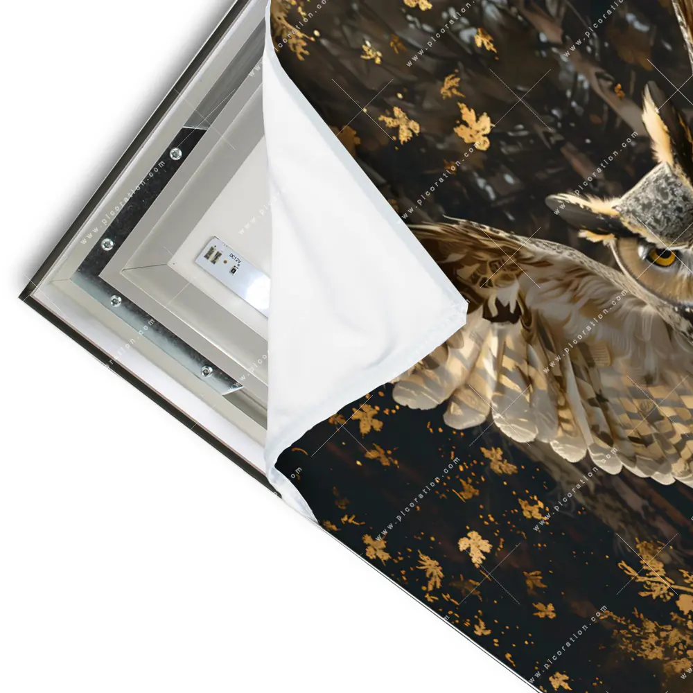 Ihr neues LED-Wandbild mit dem Motiv Eule inmitten goldener Blätter