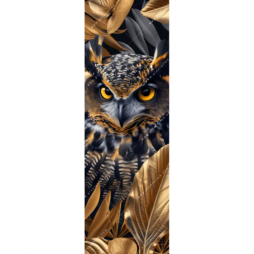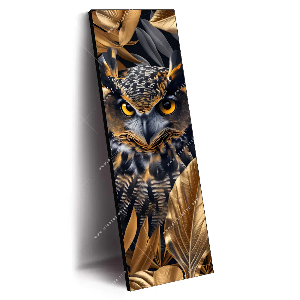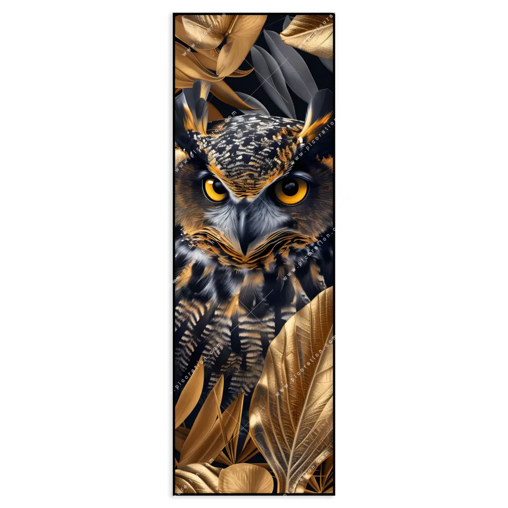 LED-Wandbild | Eule und goldene Blätter | Schmal