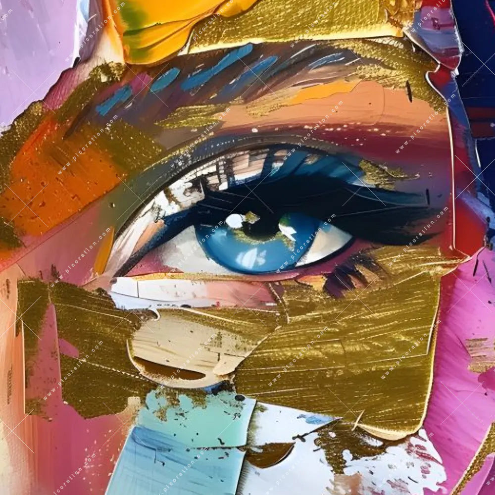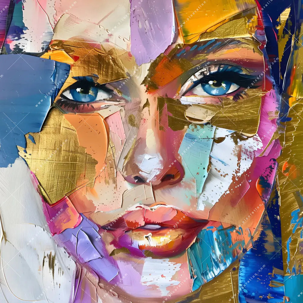 Insbesondere das LED-Wandbild Frauengesicht im abstrakten Stil im Modern Art, Abstrakt Stil der Kunst - Malerei erzeugt eine beeindruckende Wirkung, die in dessen Gold, Blau, Lila Farbgebung und den quadratischen Größen Maße erst recht zur Geltung kommt und betont wird. So schaffen Sie ein einmaliges Highlight in Ihrem Friseur - Beauty, Wohnzimmer - Schlafzimmer, Flur - Eingangsbereich und erzeugen eine unverwechselbare Wohlfühlatmosphäre durch die dezente Beleuchtung des Bildes und der so entstehenden indirekten Beleuchtung des Raumes.