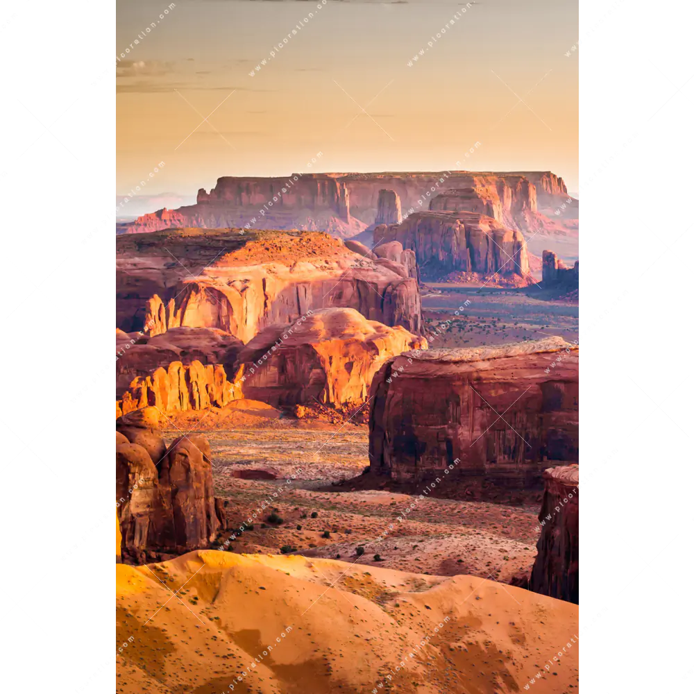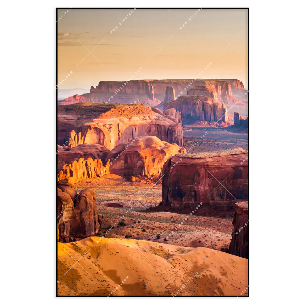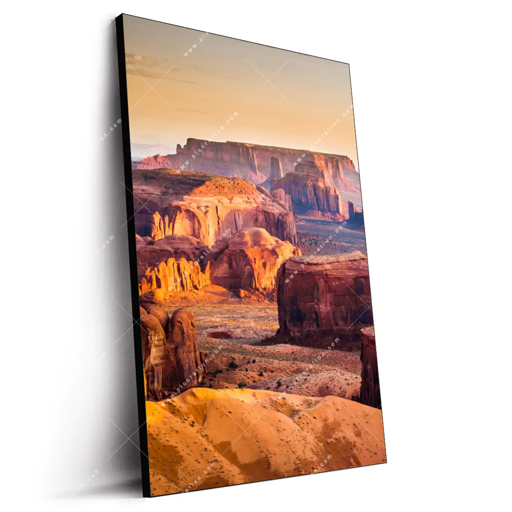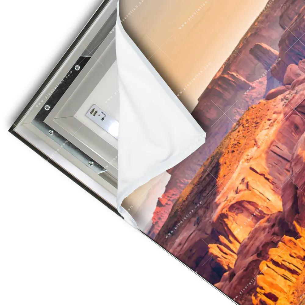 Das LED Wandbild mit dem Motiv Felsen bei Sonnenuntergang der Kategorie Landschaften ist ein besonders beeindruckendes Wandbild mit LED-Beleuchtung, denn Monument Valley Felsen in der Abendröte wirkt durch die feinen LED´s hinter der textilen Oberfläche des Wandbildes noch intensiver und faszinierender auf den Betrachter. Unterstützt wird diese Wirkung des Wandbildes durch das Hochformat, welches in den Größen Maße zur Verfügung steht, um sich optimal an Ihre Wand anzuschmiegen und dem Raum ein neues Flair zu verleihen.