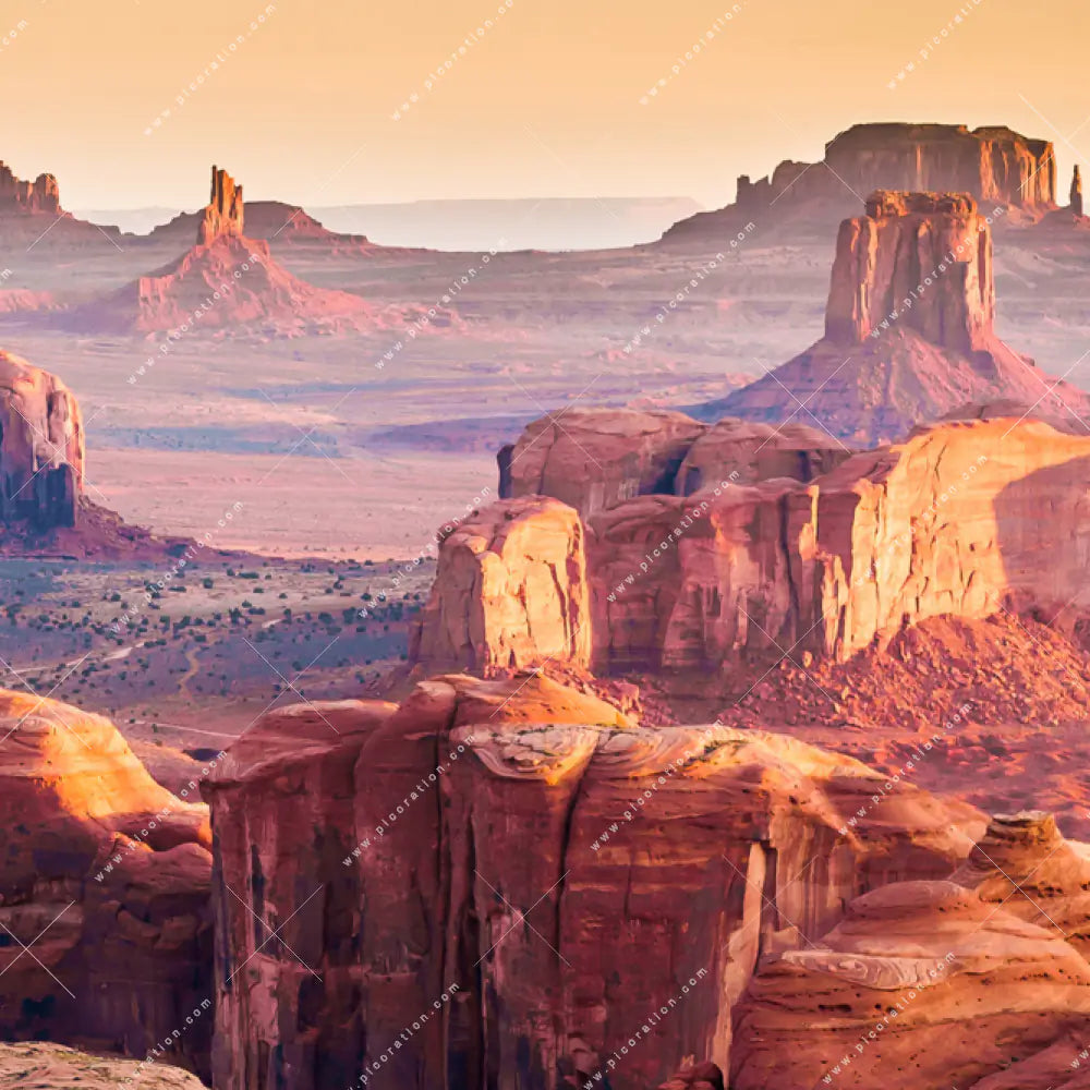 Insbesondere das LED-Wandbild-Motiv Monument Valley Felsen in der Abendröte der Kategorie Landschaften erzeugt eine wohlige und faszinierende Atmosphäre in Ihrem Arzt - Praxis, Bar - Gastronomie, Büro - Kanzlei, Flur - Eingangsbereich, Wohnzimmer - Schlafzimmer. Der Natürlich - Realistisch Stil der Fotografie wirkt durch die zahlreichen LED´s in dem Wandbild beeindruckend und das Motiv kommt noch mehr zur Geltung. Ebenfalls kommen die Farben Orange, Lila, Rot, Rosa, Blau, Grün durch die LED-Beleuchtung des Wandbildes noch besser hervor, sodass das Motiv Felsen in Wüstenlandschaft einfach unverwechselbar wird und Ihrem Raum ein ganz neues Flair verleiht.