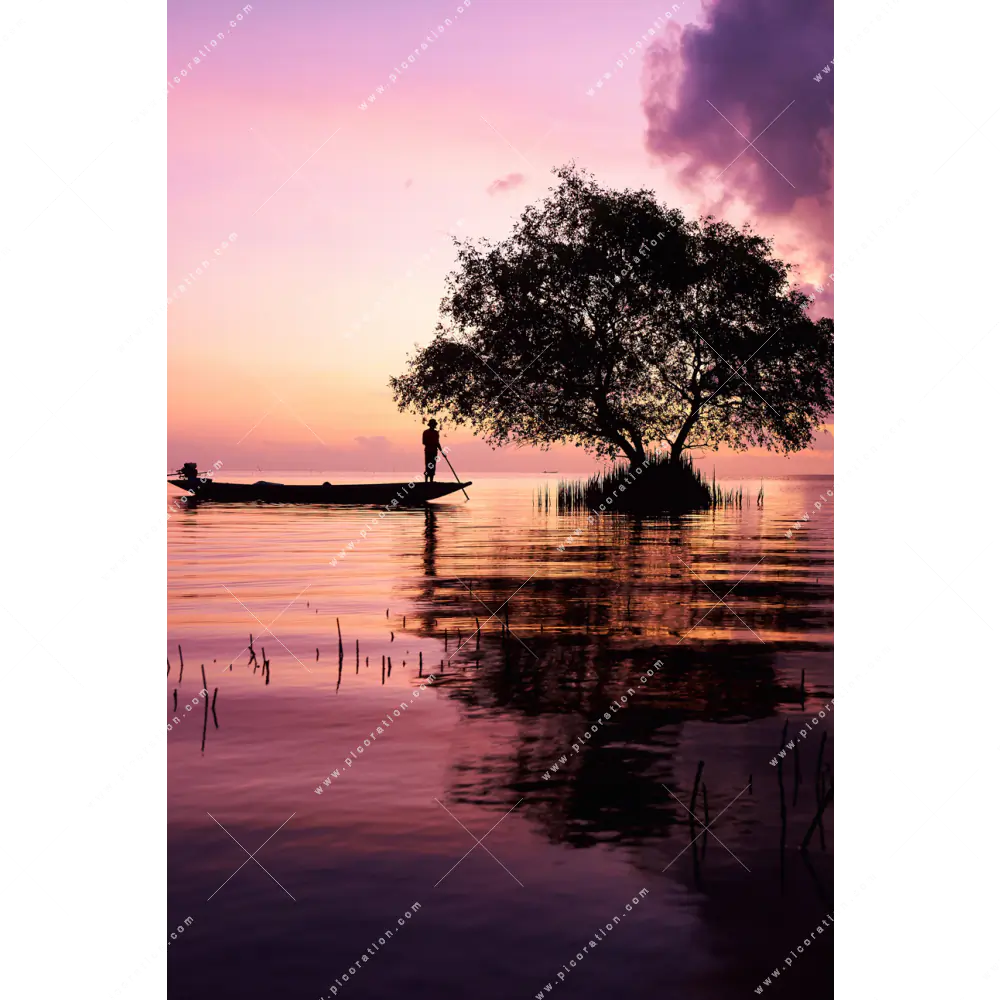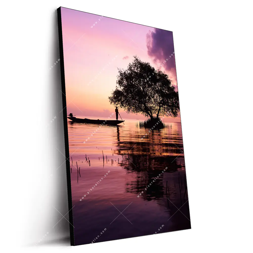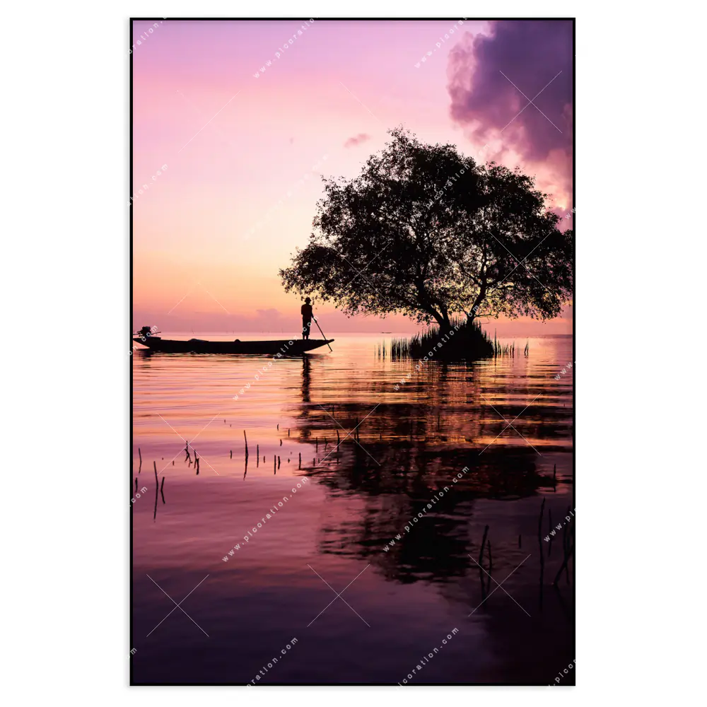 Das LED-beleuchtete Wandbild Fischer in der Morgensonne im Hochformat kann sowohl als Einzelstück als auch als Teil einer größeren Wandgestaltung verwendet werden, so oder so wirkt es atemberaubend auf die Betrachter und verleiht dem Raum ein extravagantes Flair. Der Natürlich - Realistisch Stil der Fotografie wirkt in der Lila, Rosa, Schwarz Farbgebung einmalig und besonders. Die indirekte Beleuchtung des Wandbildes durch die LED´s verstärkt die Wirkung und bringt die Farben und Muster zum Leuchten.
