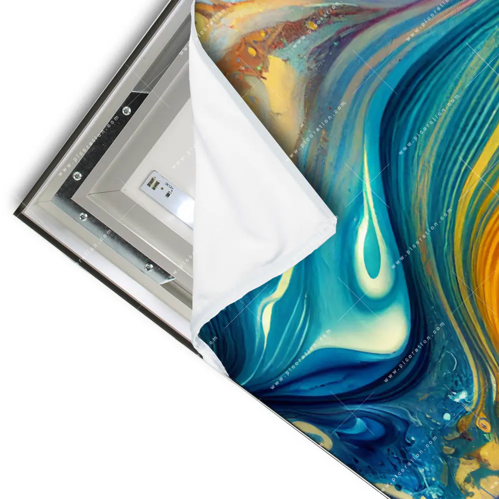 Als Wandbild mit integrierter LED-Beleuchtung wird das Motiv Ozean aus flüssigen Farben von einer besonders faszinierenden Seite dargestellt. Durch die Auswahl an den Größen Maße können Sie das passende Hochformat für Ihre Wand auswählen und so die Einrichtung Ihres Raumes perfektionieren.