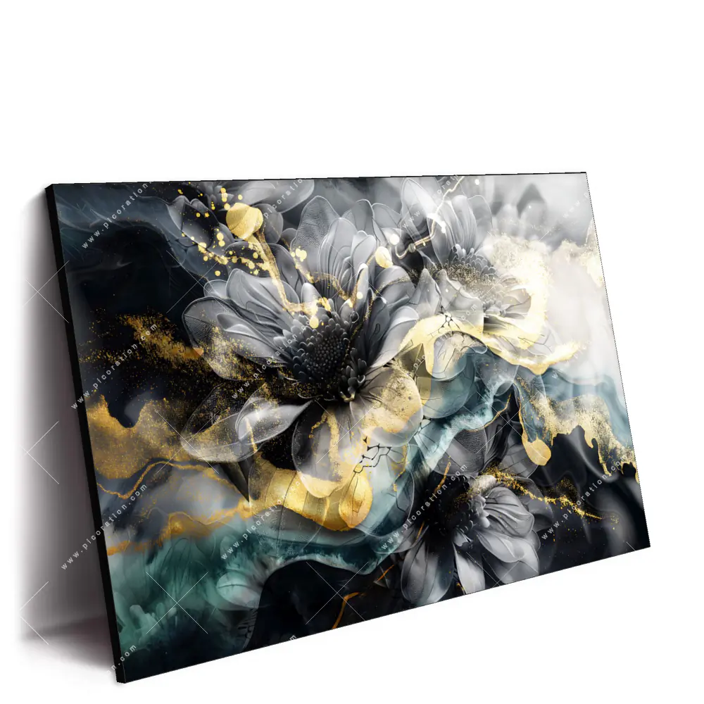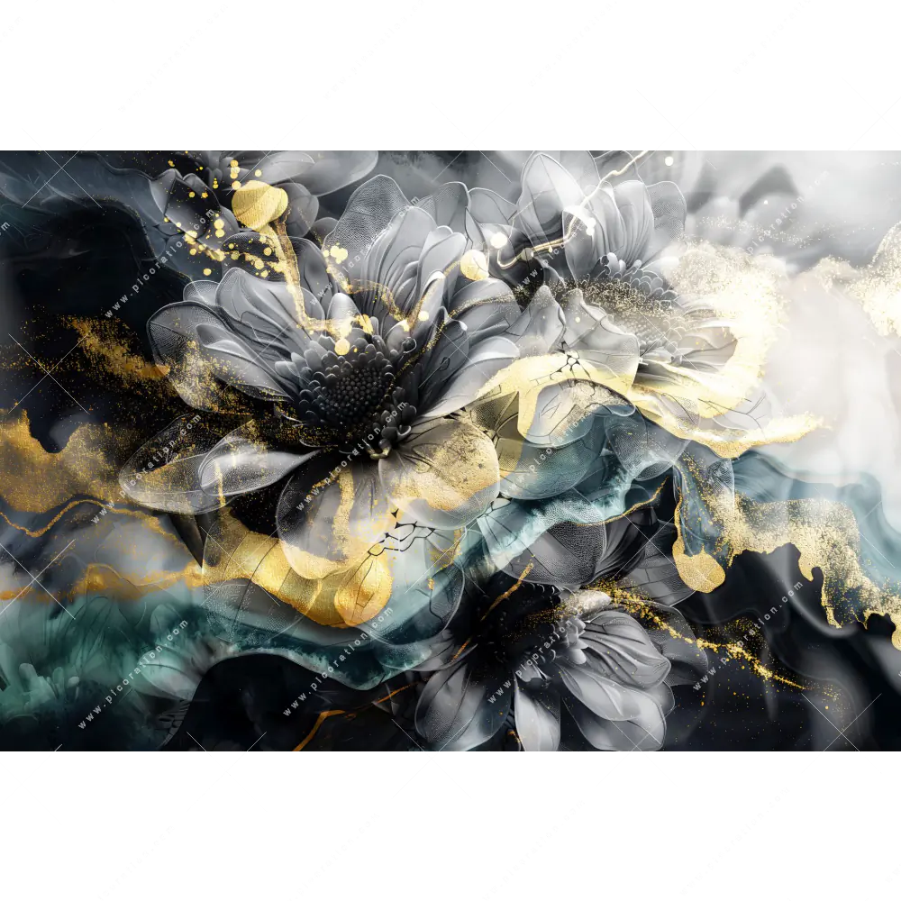 Insbesondere das LED-Wandbild-Motiv Dunkle Blumen der Kategorie Blumen - Botanik, Muster - Texturen erzeugt eine wohlige und faszinierende Atmosphäre in Ihrem Wohnzimmer - Schlafzimmer, Arzt - Praxis, Flur - Eingangsbereich. Der Abstrakt, Floral, Modern Art Stil der Digitale Kunst, Kunst - Malerei wirkt durch die zahlreichen LED´s in dem Wandbild beeindruckend und das Motiv kommt noch mehr zur Geltung. Ebenfalls kommen die Farben Schwarz, Grau , Gold, Türkis durch die LED-Beleuchtung des Wandbildes noch besser hervor, sodass das Motiv Florales abstraktes Design einfach unverwechselbar wird und Ihrem Raum ein ganz neues Flair verleiht.