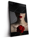 Die dimmbaren LEDs erweitern die künstlerischen Möglichkeiten und schaffen eine anpassbare Beleuchtung, die das Bild schwarz gekleidete Frau mit roter Rose lebendig erscheinen lässt. Frau, Lippen, Mund, Porträt, modern, Beauty, Schönheit, Mädchen, Rose, Blume, Blüte, Hut, Gesicht – all´ das ist in diesem faszinierenden Panorama-Wandbild mit LED´s vereint und macht Ihren Raum zu einem Ort mit einem ganz einmaligen Wohlfühlerlebnis.