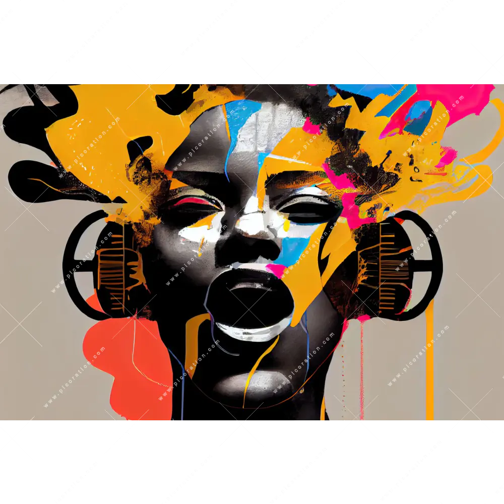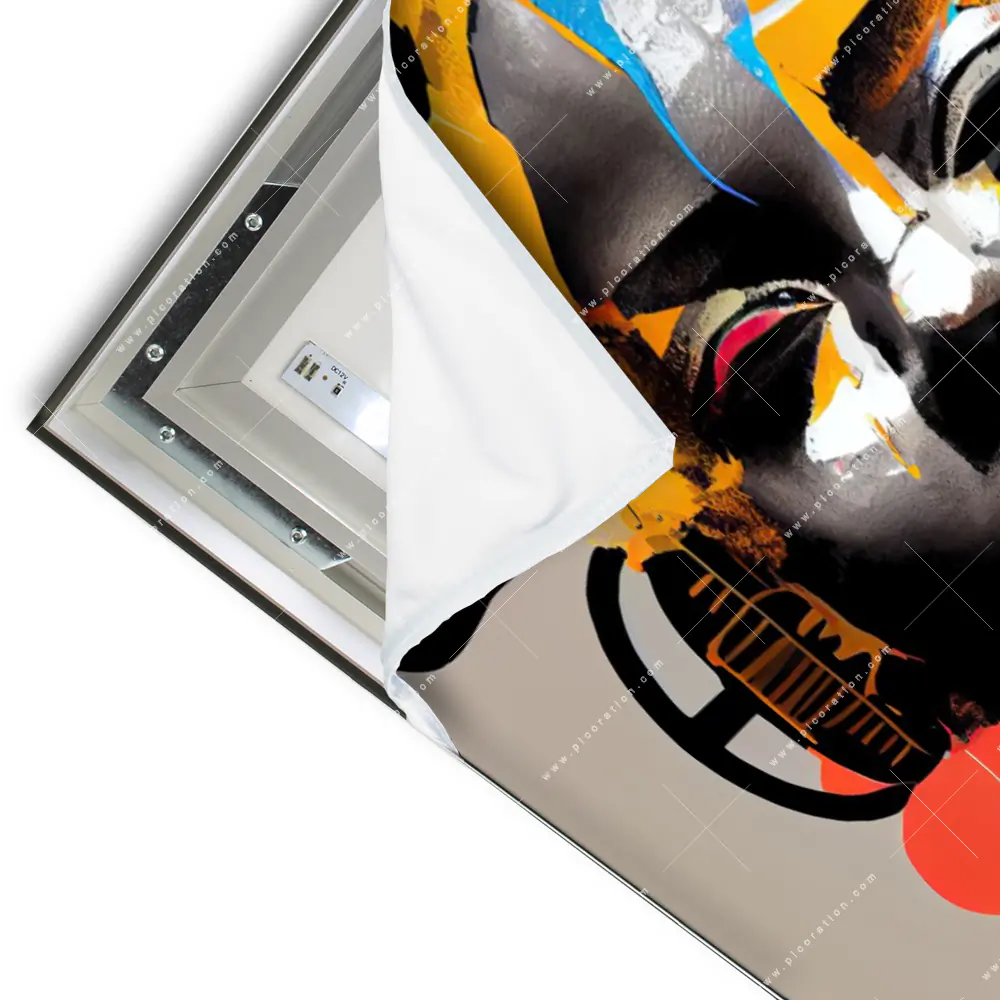 Insbesondere das LED-Wandbild-Motiv Musik in bunten Farben der Kategorie Porträts - Menschen erzeugt eine wohlige und faszinierende Atmosphäre in Ihrem Wohnzimmer - Schlafzimmer, Bar - Gastronomie, Friseur - Beauty, Flur - Eingangsbereich. Der Abstrakt, Modern Art Stil der Digitale Kunst, Kunst - Malerei wirkt durch die zahlreichen LED´s in dem Wandbild beeindruckend und das Motiv kommt noch mehr zur Geltung. Ebenfalls kommen die Farben Beige, Schwarz, Orange, Pink durch die LED-Beleuchtung des Wandbildes noch besser hervor, sodass das Motiv Buntes Gesicht einer musikalischen Frau einfach unverwechselbar wird und Ihrem Raum ein ganz neues Flair verleiht.
