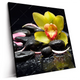 Orchideenblüte auf schwarzen Steinen als Wandbild mit LED-Beleuchtung – einfach beeindruckend