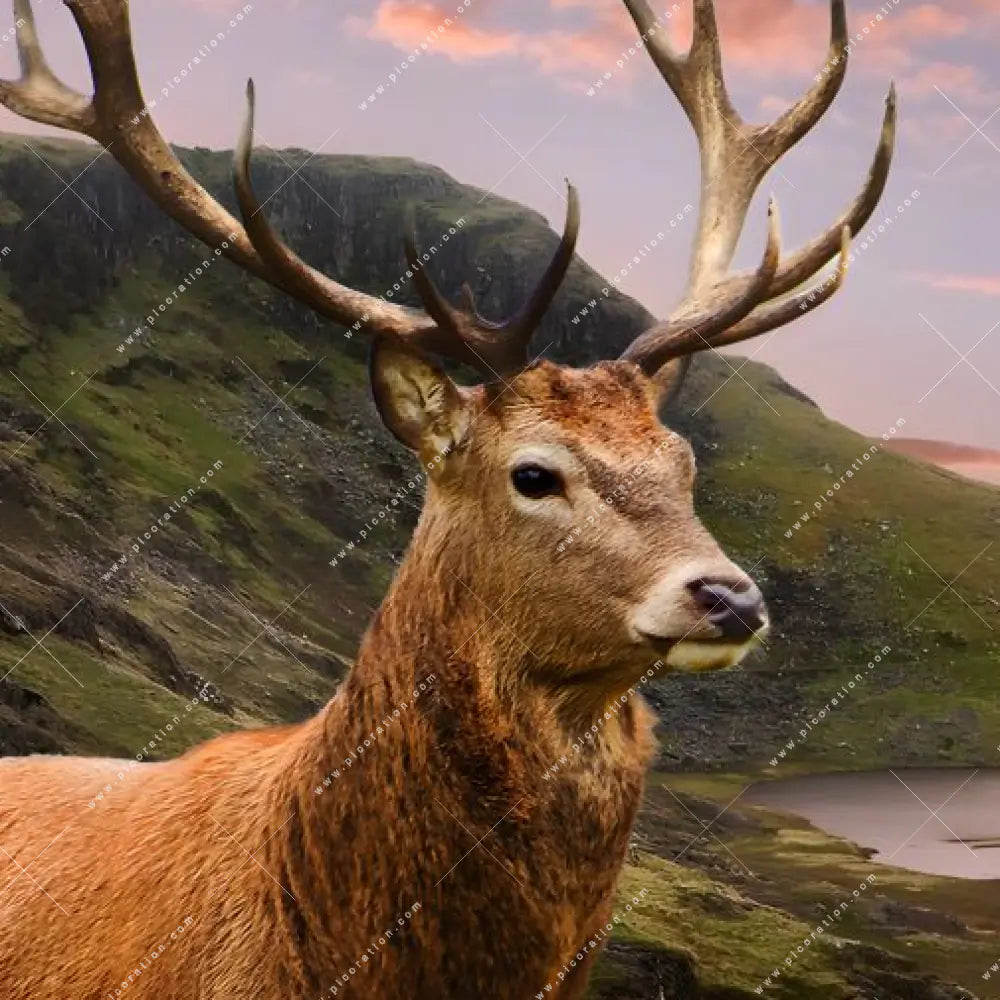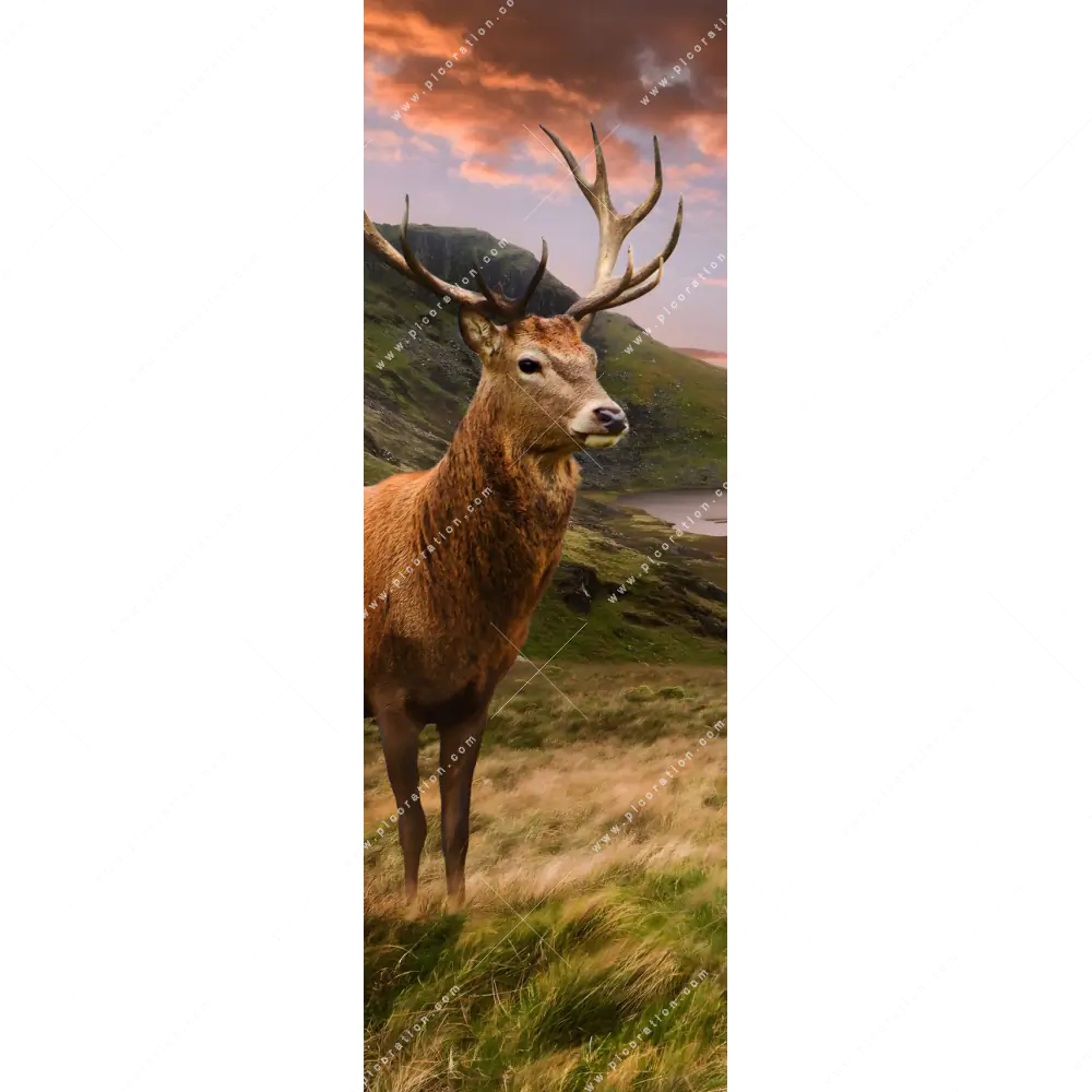 LED-Wandbild | Hirsch in Gebirgslandschaft | Schmal