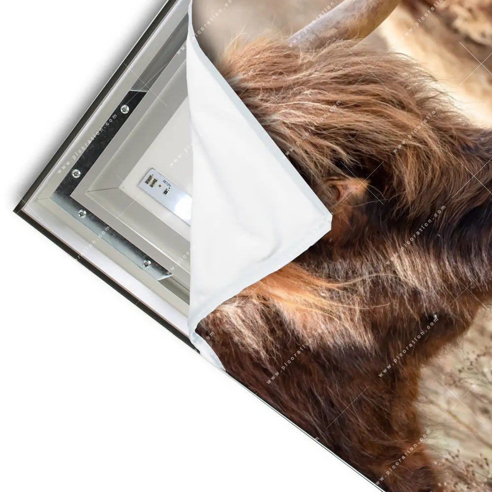 Schottisches Rind als LED-Wandbild – schaffen Sie Wohlfühlatmosphäre