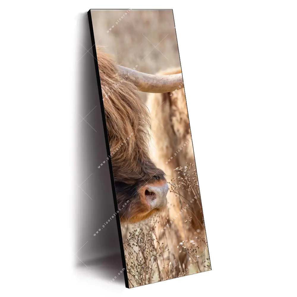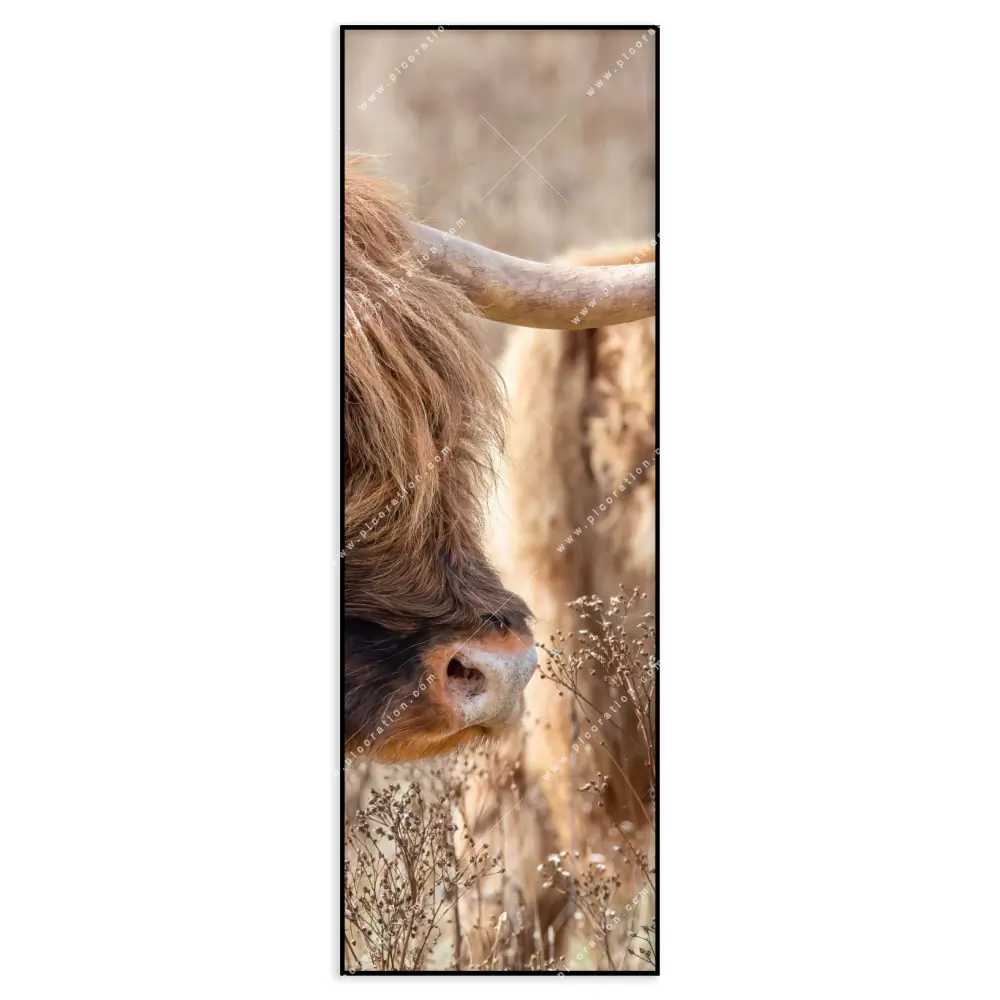 LED-Wandbild | Hochlandrind auf Weide | Schmal