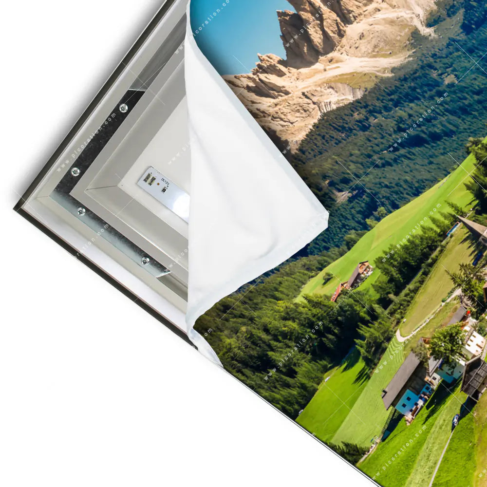 Das innovative LED-Leuchtbild im Quadrat, mit dem Motiv "Idyllisches Dorf in den Bergen", ist eine moderne Wanddekoration mit wechselbarem Textildruck. Dieses beleuchtete Wandbild mit dem Thema "Landschaften, Architektur - Gebäude" besteht aus einem CANVALIGHT® LED-Spannrahmen von 4,5-6 cm Tiefe. Die integrierte LED-Beleuchtung strahlt in der Lichtfarbe 6500-7000K und erzeugt eine ansprechende Atmosphäre. Der Textildruck zeigt Berge, Wiese, Gebirge, Urlaub, Dorf, Sonnenschein, Reisen, Häuser, Natur und ist auf hochwertigem High-Tech-Polyestergewebe gedruckt. Das Quadrat-Design mit Bergdorfpanorama in den Alpen in den Farben Grün, Beige, Blau, Weiss, Hellblau, Hellgrün, Ocker wird durch einen umlaufenden Keder im Rahmen gehalten. Unser dimmbares LED Wandbild "Bergdorf und seine malerische Landschaft" im Natürlich - Realistisch und modernen Kunststil wird inklusive Fernbedienung geliefert. Das Quadrat LED Bild "LED-Wandbild | Idyllisches Dorf in den Bergen | Quadrat" wird steckerfertig produziert und kann direkt an die Steckdose angeschlossen werden. Alternativ kann das Netzteil auch innenliegend (Kabel kommt aus der Wand) verwendet werden.