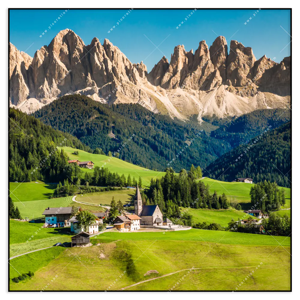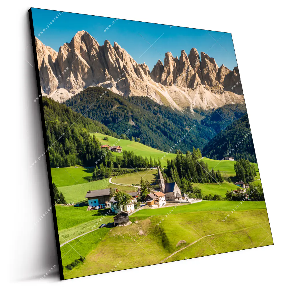 Insbesondere das LED-Wandbild Schönes Bergdorf in den Alpen im Natürlich - Realistisch Stil der Fotografie erzeugt eine beeindruckende Wirkung, die in dessen Grün, Beige, Blau, Weiss, Hellblau, Hellgrün, Ocker Farbgebung und den quadratischen Größen Maße erst recht zur Geltung kommt und betont wird. So schaffen Sie ein einmaliges Highlight in Ihrem Wohnzimmer - Schlafzimmer, Flur - Eingangsbereich, Büro - Kanzlei, Arzt - Praxis und erzeugen eine unverwechselbare Wohlfühlatmosphäre durch die dezente Beleuchtung des Bildes und der so entstehenden indirekten Beleuchtung des Raumes.
