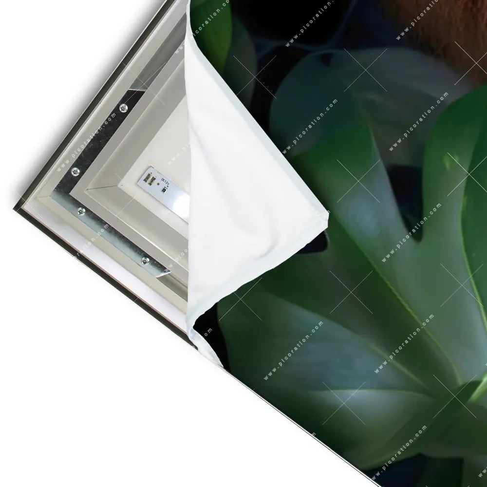 Das innovative LED-Leuchtbild im Panorama, mit dem Motiv "Löwe im grünen Regenwald", ist eine moderne Wanddekoration mit wechselbarem Textildruck. Dieses beleuchtete Wandbild mit dem Thema "Tierwelt, Blumen - Botanik" besteht aus einem CANVALIGHT® LED-Spannrahmen von 4,5-6 cm Tiefe. Die integrierte LED-Beleuchtung strahlt in der Lichtfarbe 6500-7000K und erzeugt eine ansprechende Atmosphäre. Der Textildruck zeigt Raubkatze, Löwe, Afrika, Lion, Tierporträt, Safari, Dschungel, Regenwald, Monstera, Blätter und ist auf hochwertigem High-Tech-Polyestergewebe gedruckt. Das Panorama-Design mit König des Dschungels in den Farben Braun, Beige, Grün wird durch einen umlaufenden Keder im Rahmen gehalten. Unser dimmbares LED Wandbild "Kraftvoller Löwe" im Modern Art, Natürlich - Realistisch, Floral und modernen Kunststil wird inklusive Fernbedienung geliefert. Das Panorama LED Bild "LED-Wandbild | Löwe im grünen Regenwald | Panorama" wird steckerfertig produziert und kann direkt an die Steckdose angeschlossen werden. Alternativ kann das Netzteil auch innenliegend (Kabel kommt aus der Wand) verwendet werden.