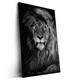Der Eyecatcher im Raum - kräftiger Löwe mit leuchtenden Augen als LED-Wandbild im Hochformat