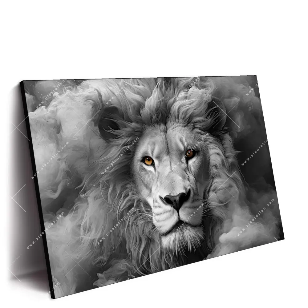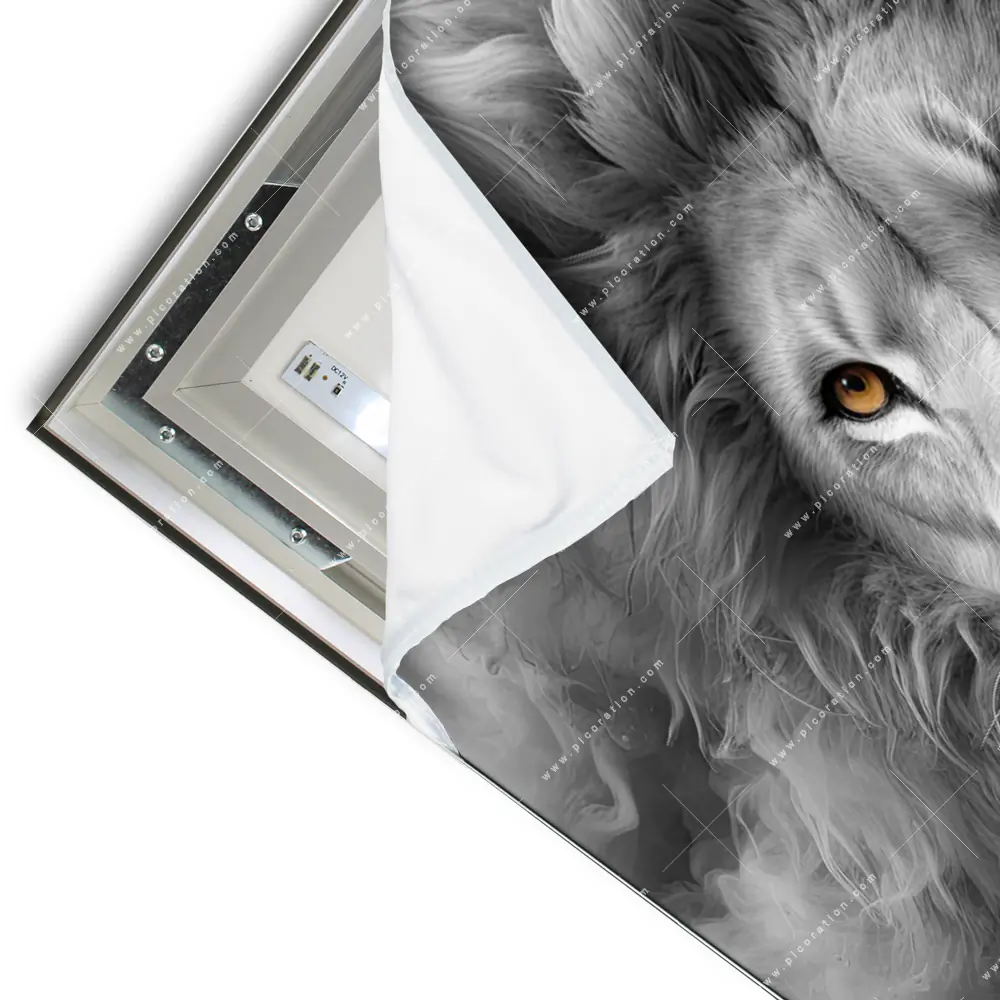 Ihr neues LED-Wandbild mit dem Motiv Löwengesicht in Rauch