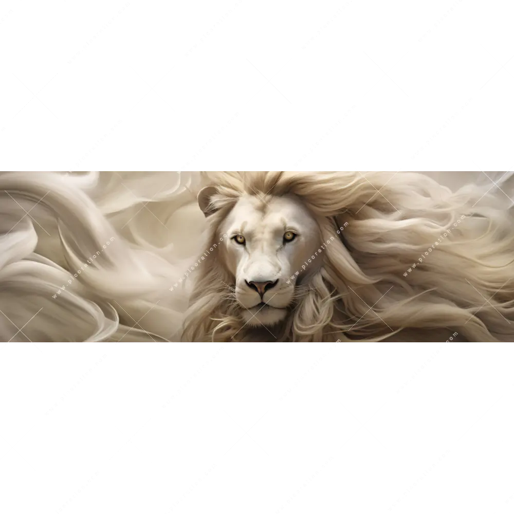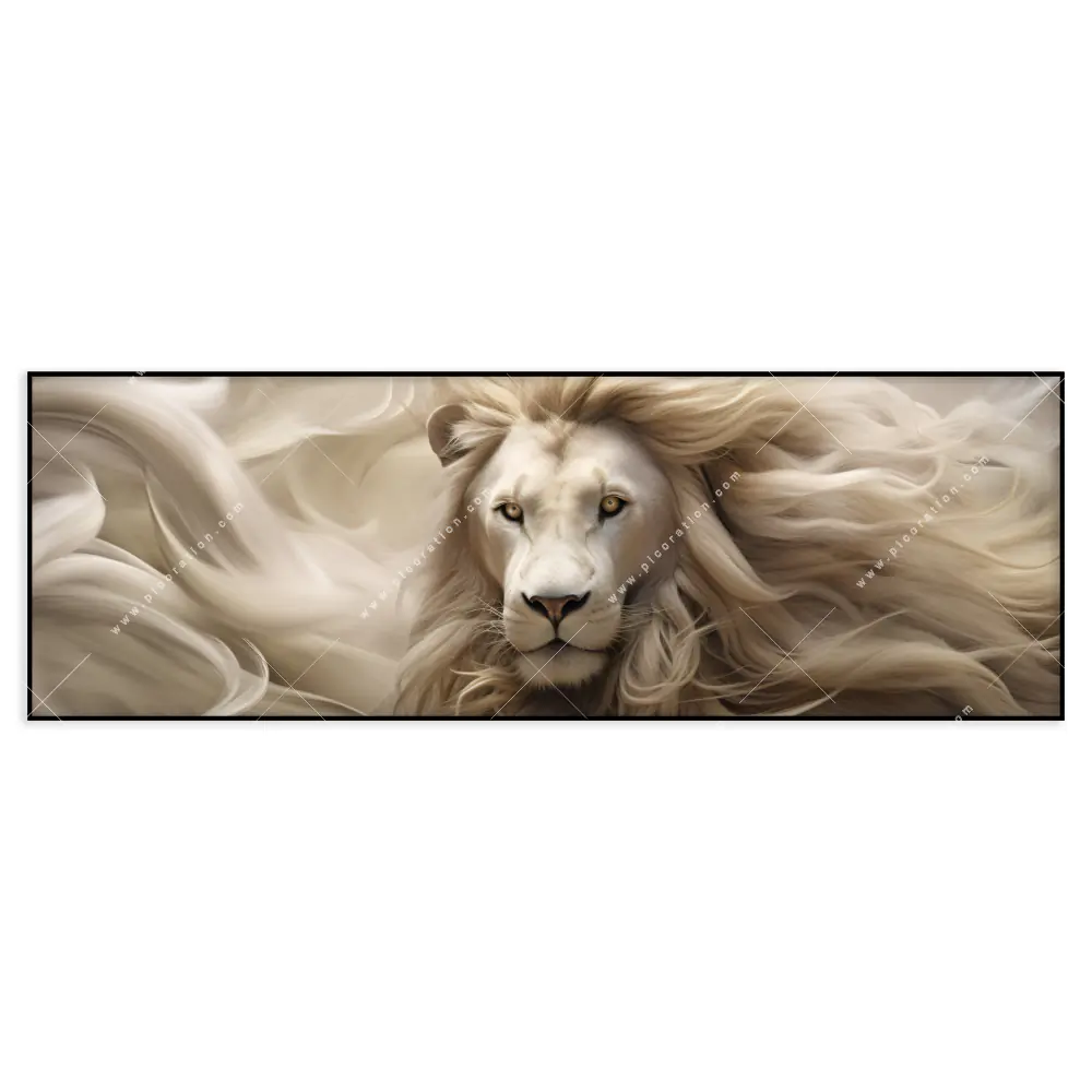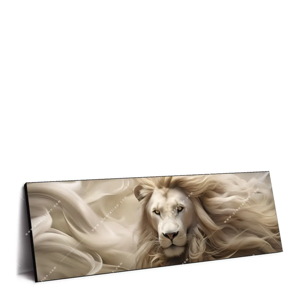 LED-Wandbild | Löwenkopf mit weißer Mähne | Panorama