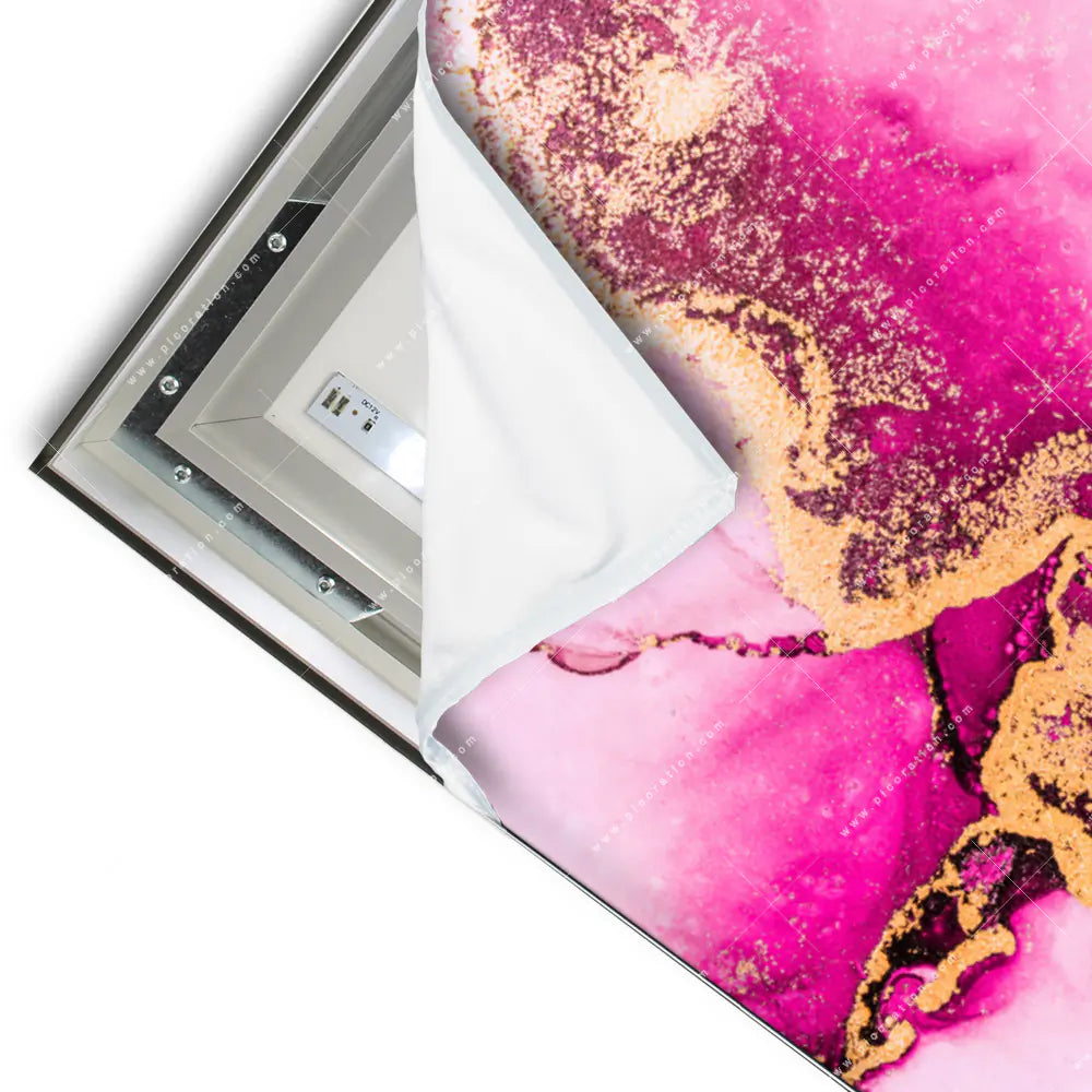 Das LED Wandbild mit dem Motiv Luxury Abstract Fluid Art No. 7 der Kategorie Muster - Texturen ist ein besonders beeindruckendes Wandbild mit LED-Beleuchtung, denn Fluid Painting pink-gold wirkt durch die feinen LED´s hinter der textilen Oberfläche des Wandbildes noch intensiver und faszinierender auf den Betrachter. Unterstützt wird diese Wirkung des Wandbildes durch das Hochformat, welches in den Größen Maße zur Verfügung steht, um sich optimal an Ihre Wand anzuschmiegen und dem Raum ein neues Flair zu verleihen.