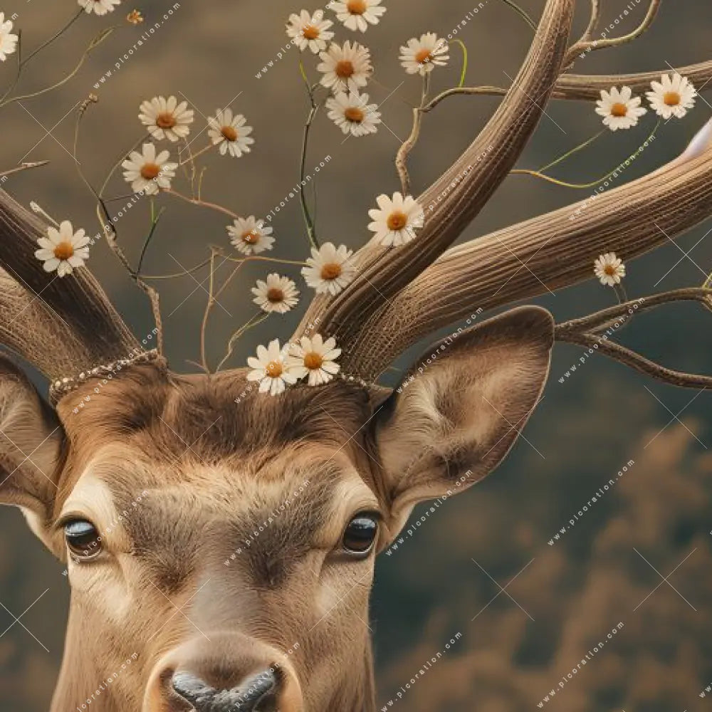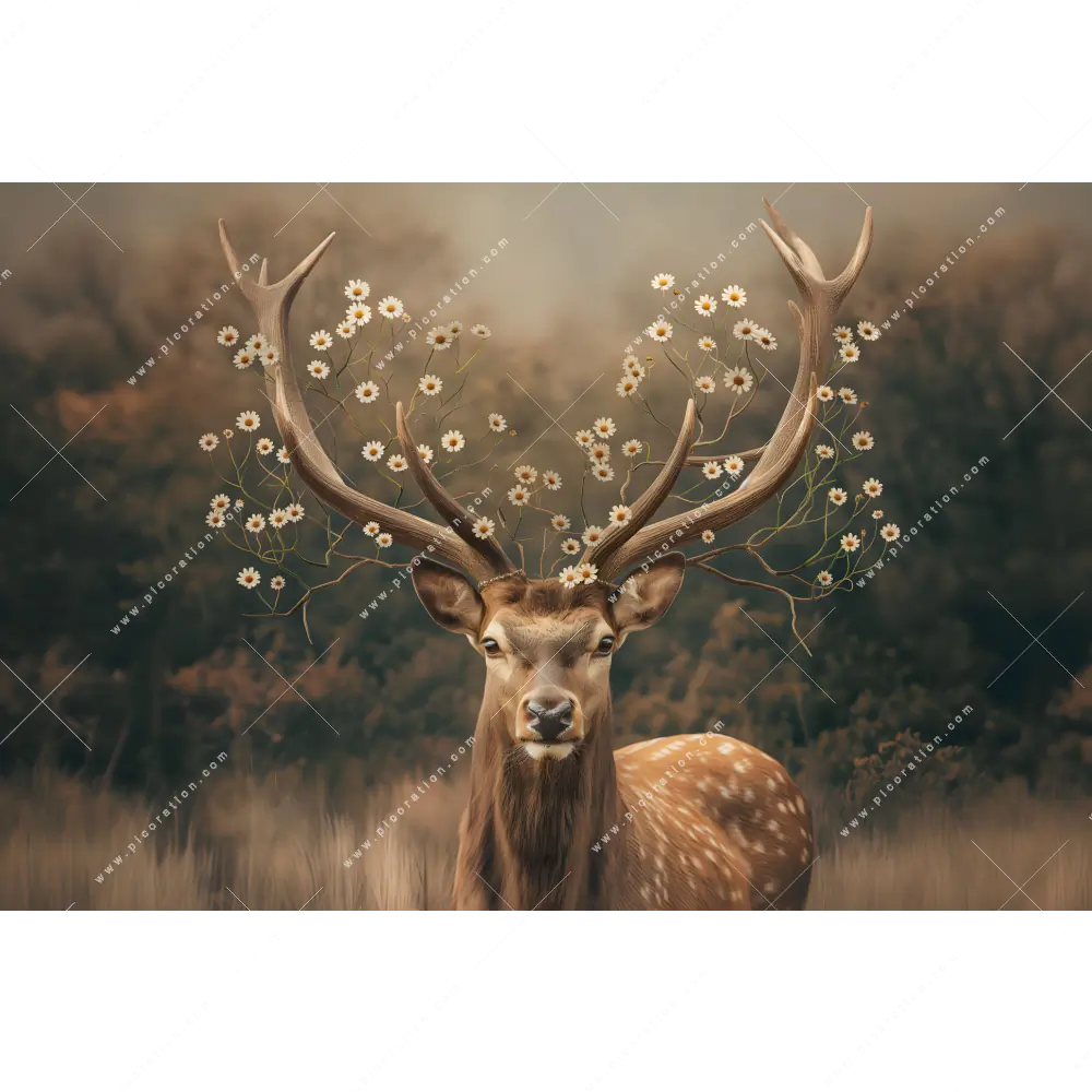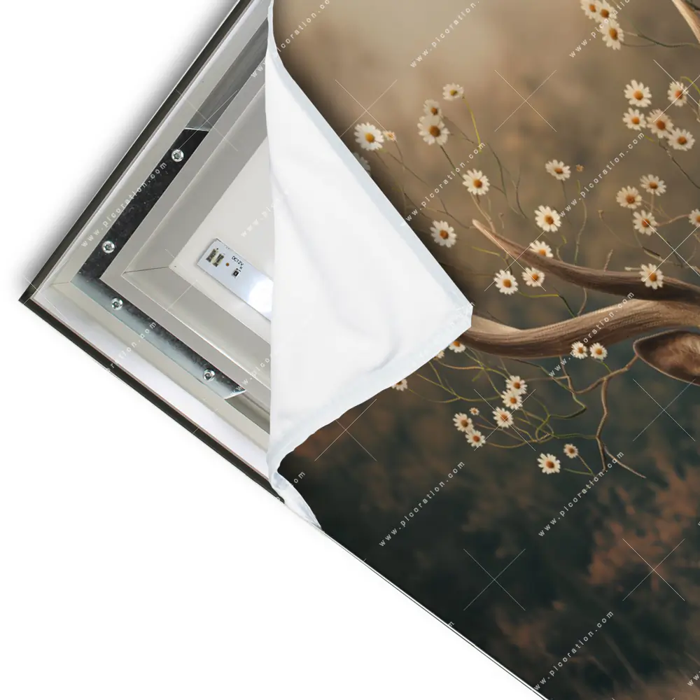 Der Eyecatcher im Raum - Naturkunst: Rothirsch und Ganseblümchen als LED-Wandbild im Hochformat