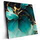 LED-Wandbild | Marmor Blüten in türkis & gold | Schmal