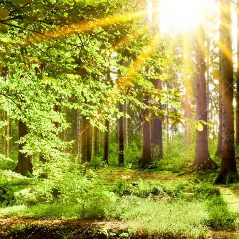 Sonnenschein im Wald als LED-Wandbild verleiht dem Raumen einen faszinierenden Zauber