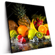 Der Eyecatcher im Raum - bunte Früchte vor dunklem Hintergrund als LED-Wandbild im Hochformat