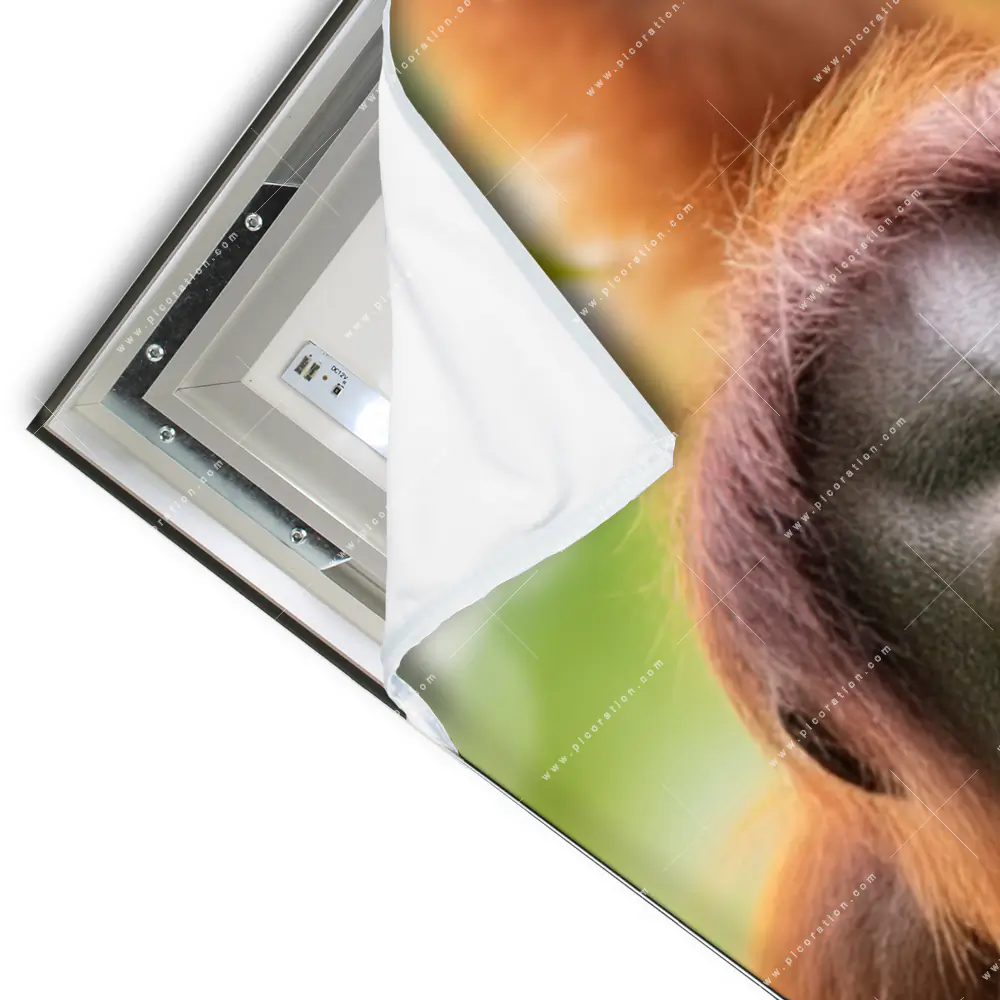 Das innovative LED-Leuchtbild im Schmal, mit dem Motiv "Orang Utan Familie im Regenwald", ist eine moderne Wanddekoration mit wechselbarem Textildruck. Dieses beleuchtete Wandbild mit dem Thema "Tierwelt" besteht aus einem CANVALIGHT® LED-Spannrahmen von 4,5-6 cm Tiefe. Die integrierte LED-Beleuchtung strahlt in der Lichtfarbe 6500-7000K und erzeugt eine ansprechende Atmosphäre. Der Textildruck zeigt Dschungel, Regenwald, Affe, Orang-Utan, Dschnugel - Tiere und ist auf hochwertigem High-Tech-Polyestergewebe gedruckt. Das Schmal-Design mit Affen im tropischen Dschungel in den Farben Grün, Braun, Rot wird durch einen umlaufenden Keder im Rahmen gehalten. Unser dimmbares LED Wandbild "Orang-Utans im Wald" im Natürlich - Realistisch und modernen Kunststil wird inklusive Fernbedienung geliefert. Das Schmal LED Bild "LED-Wandbild | Orang Utan Familie im Regenwald | Schmal" wird steckerfertig produziert und kann direkt an die Steckdose angeschlossen werden. Alternativ kann das Netzteil auch innenliegend (Kabel kommt aus der Wand) verwendet werden.