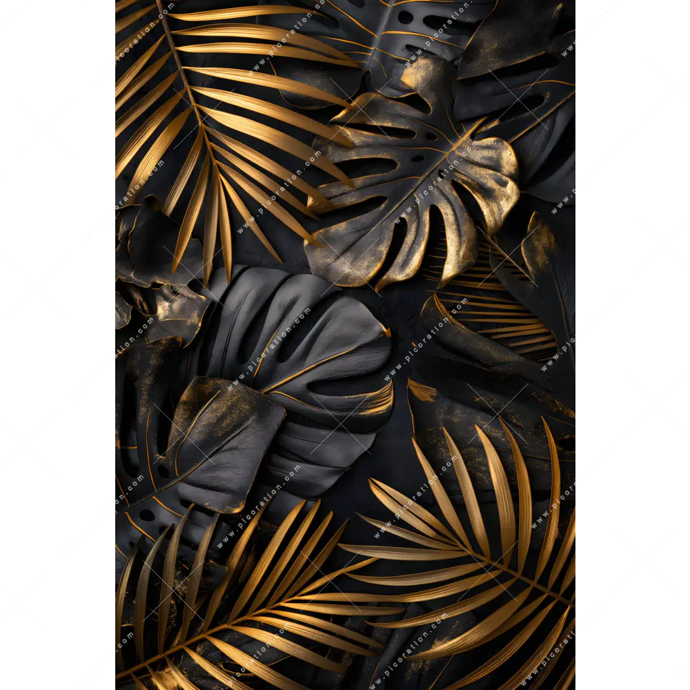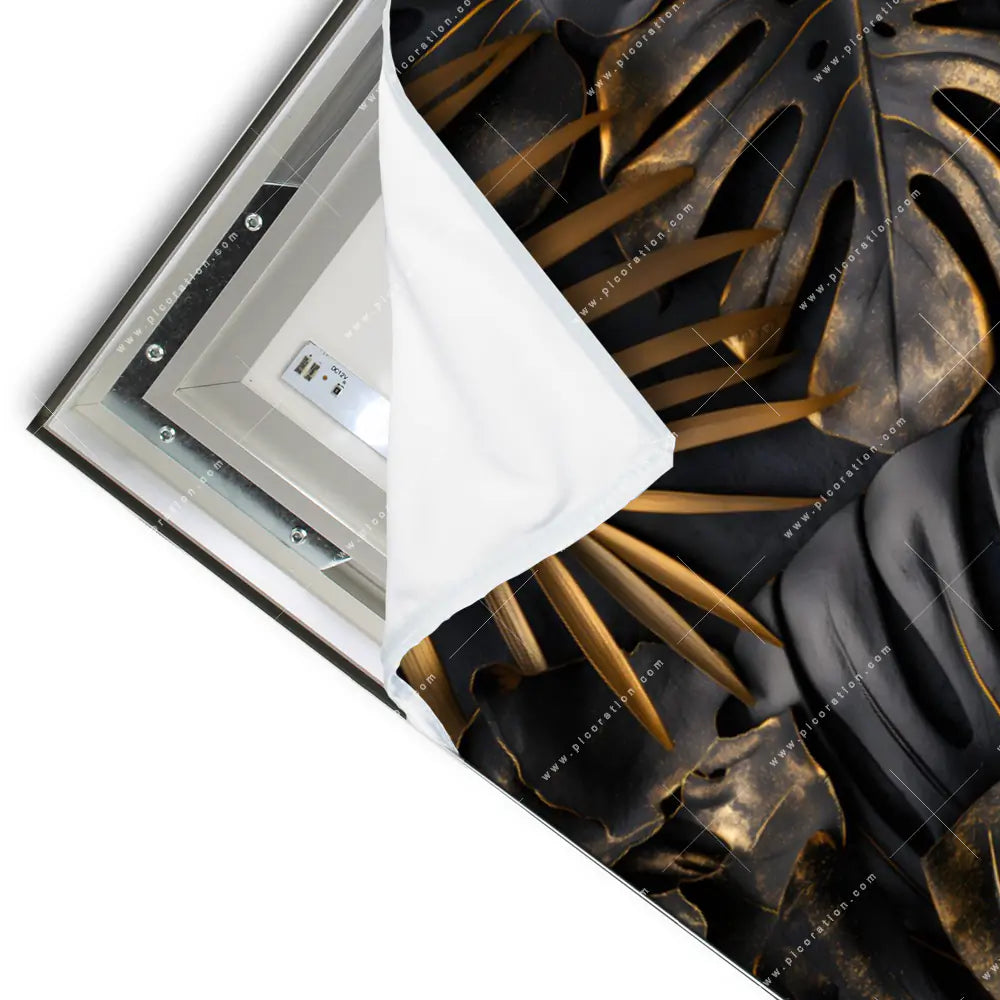 LED-Wandbild | Palmenblätter Schwarz Gold | Hochformat
