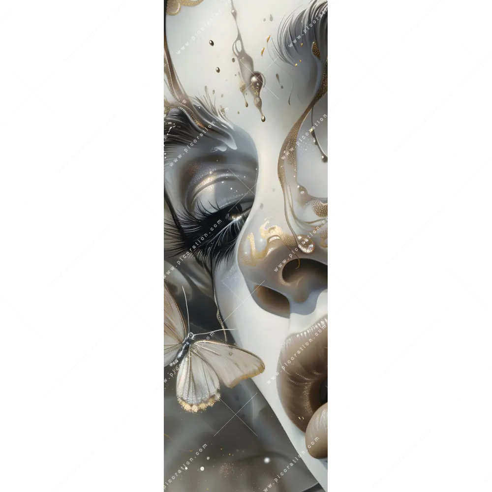 Frauenporträt - Goldene Schmetterlingsvision als Wandbild mit LED-Beleuchtung – einfach beeindruckend