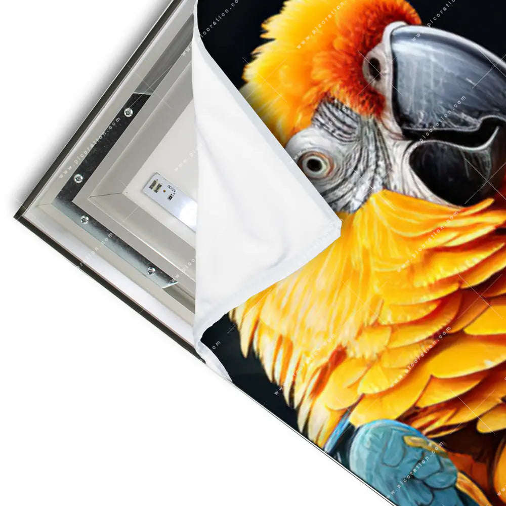 Aras im Dschungel als Wandbild mit LED-Beleuchtung – einfach beeindruckend