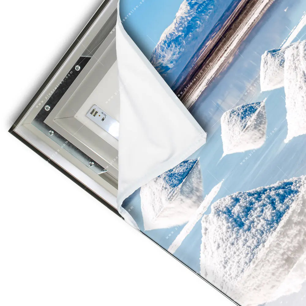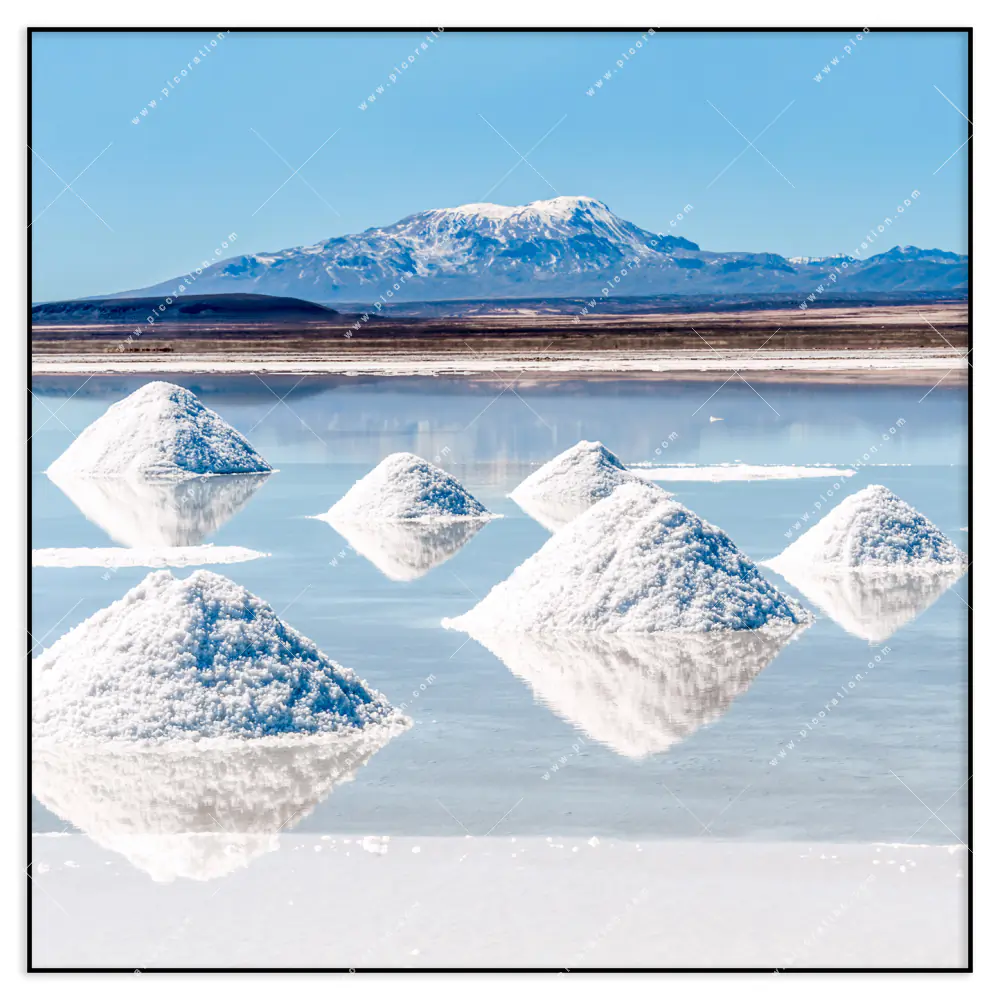 Insbesondere das LED-Wandbild Salzpyramiden vor Bergkulisse im Natürlich - Realistisch Stil der Fotografie erzeugt eine beeindruckende Wirkung, die in dessen Weiss, Blau, Hellblau Farbgebung und den quadratischen Größen Maße erst recht zur Geltung kommt und betont wird. So schaffen Sie ein einmaliges Highlight in Ihrem Arzt - Praxis, Büro - Kanzlei, Flur - Eingangsbereich, Wohnzimmer - Schlafzimmer und erzeugen eine unverwechselbare Wohlfühlatmosphäre durch die dezente Beleuchtung des Bildes und der so entstehenden indirekten Beleuchtung des Raumes.