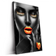 Das textile Oberflächenmaterial des LED-Wandbildes mit dem Motiv schöne Frau mit vollmundigen Lippen sorgt für eine hervorragende Lichtdurchlässigkeit, was den Effekt der indirekten Wandbild-Beleuchtung maximiert und das Bild zum Leben erweckt. Lassen Sie Ihr Bar | Gastronomie, Eingangsbereich, Schlafzimmer, Wohnzimmer mit dem LED-Bild attraktive Geste einer Dame der Kategorie Porträts - Menschen erstrahlen und erschaffen Sie sich durch diese Atmosphäre eine Wohlfühloase. In diesem LED-Wandbild kommen die Farben Gold, Silber, Schwarz besonders zur Geltung, was den Stil des Wandbildes weiter untermalt.