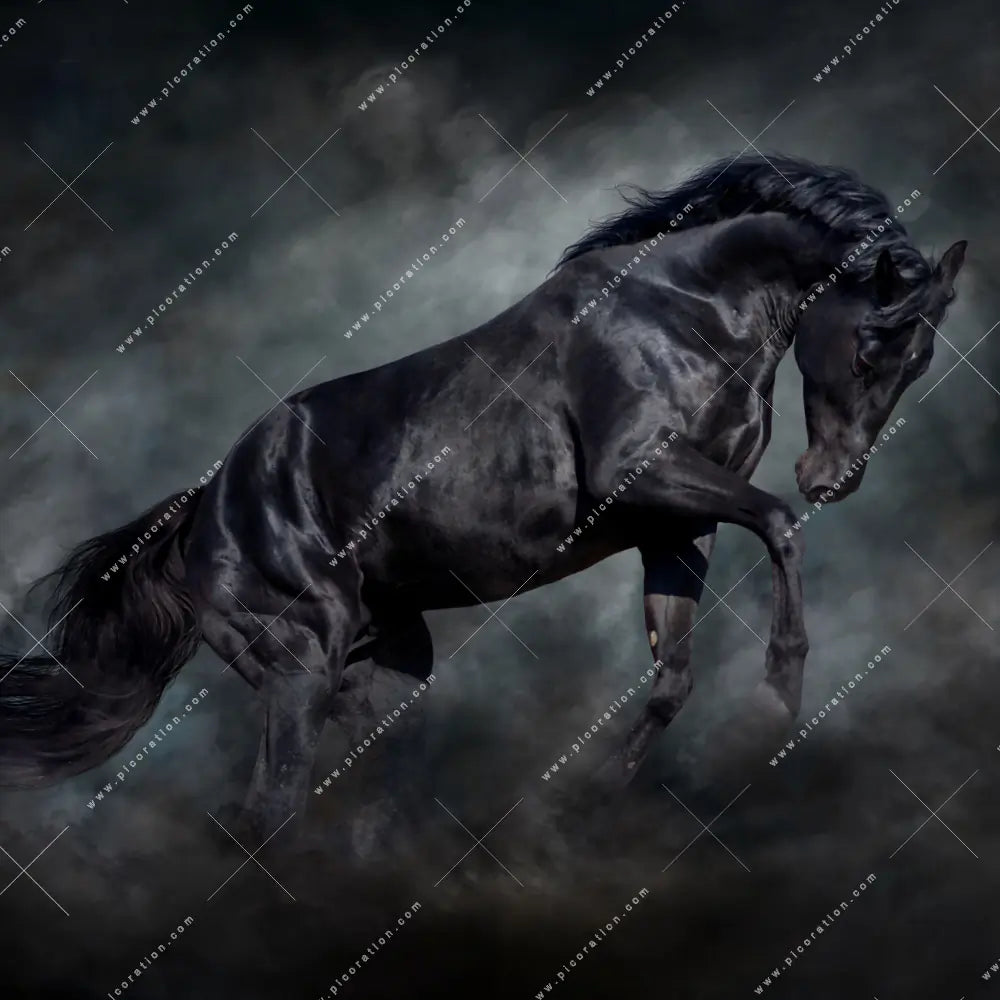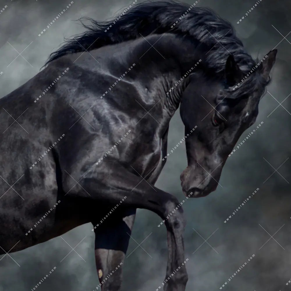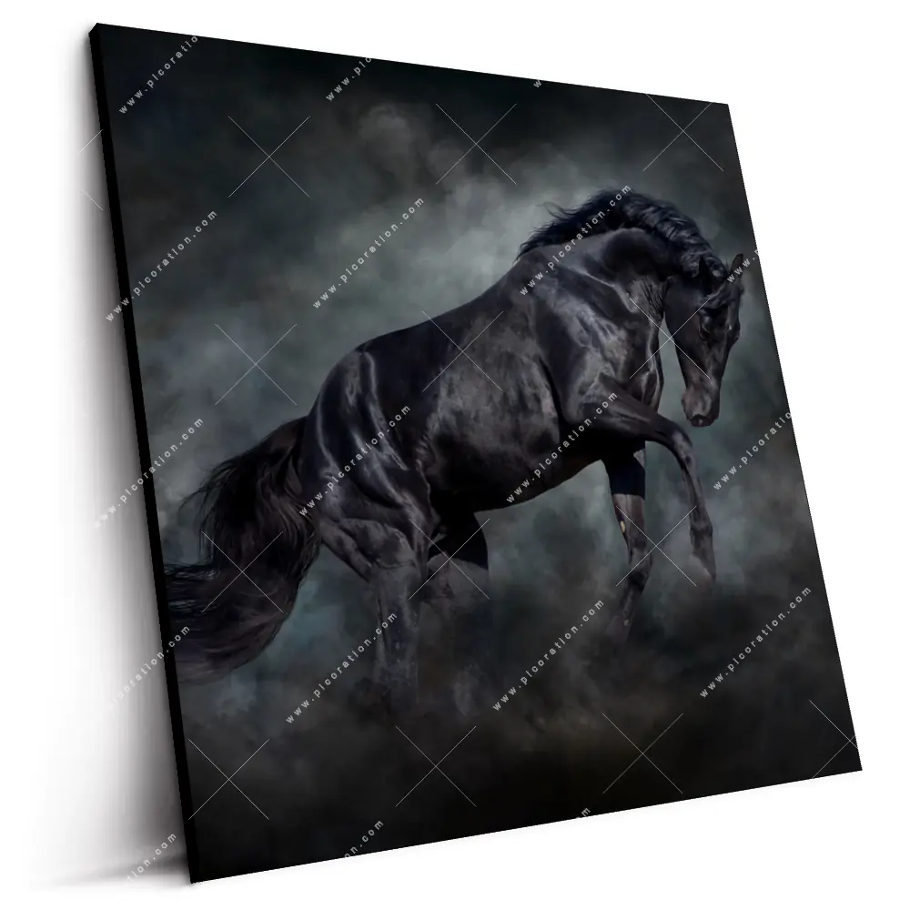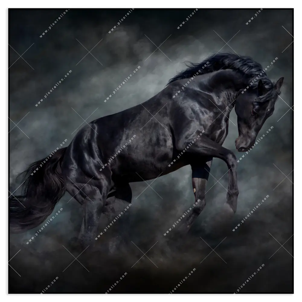 LED-Wandbild | Schwarzer Hengst | Quadrat