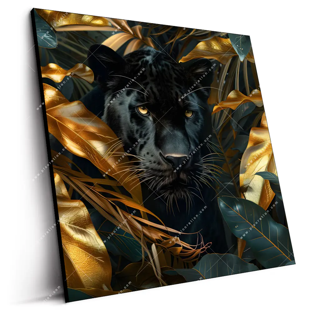 LED-Wandbild | Schwarzer Panther im Dschungel | Quadrat