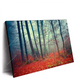 rote Laubdecke vor Nebelwald als LED-Wandbild – schaffen Sie Wohlfühlatmosphäre