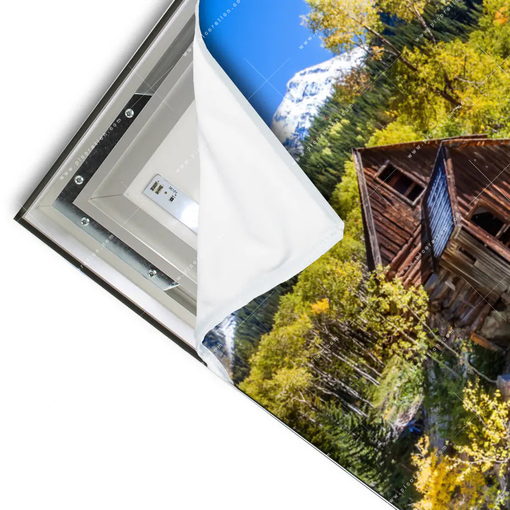 Das LED Wandbild mit dem Motiv Waldhütte am Fluss der Kategorie Architektur - Gebäude, Landschaften ist ein besonders beeindruckendes Wandbild mit LED-Beleuchtung, denn Cristall Mill in Amerika wirkt durch die feinen LED´s hinter der textilen Oberfläche des Wandbildes noch intensiver und faszinierender auf den Betrachter. Unterstützt wird diese Wirkung des Wandbildes durch das Hochformat, welches in den Größen Maße zur Verfügung steht, um sich optimal an Ihre Wand anzuschmiegen und dem Raum ein neues Flair zu verleihen.