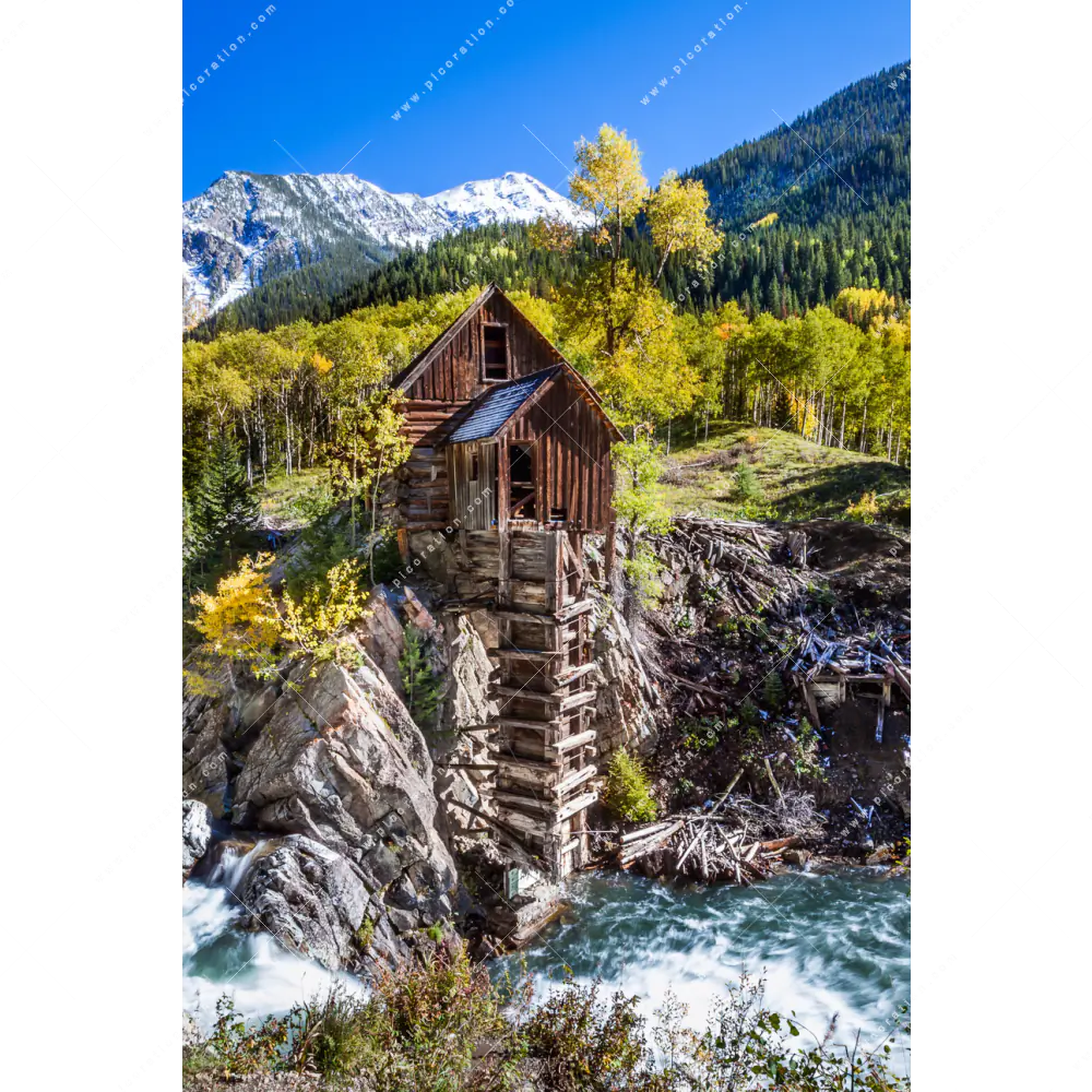 Sehenswürdigkeit, USA, Fluss, Landschaft, Wald, Berge, Bäume, Felsen, Herbst – alles vereint sich in dem atemberaubenden Motiv Kristallmühle Holzkraftwerk am Fluss Crystal River des LED-Wandbildes im Hochformat. Es ist daher eine großartige Möglichkeit, um einen Raum zu verschönern und ihm eine persönliche Note zu verleihen. Doch Sie möchten noch nach anderen Motiven stöbern? Kein Problem, bei uns finden Sie eine große Auswahl!