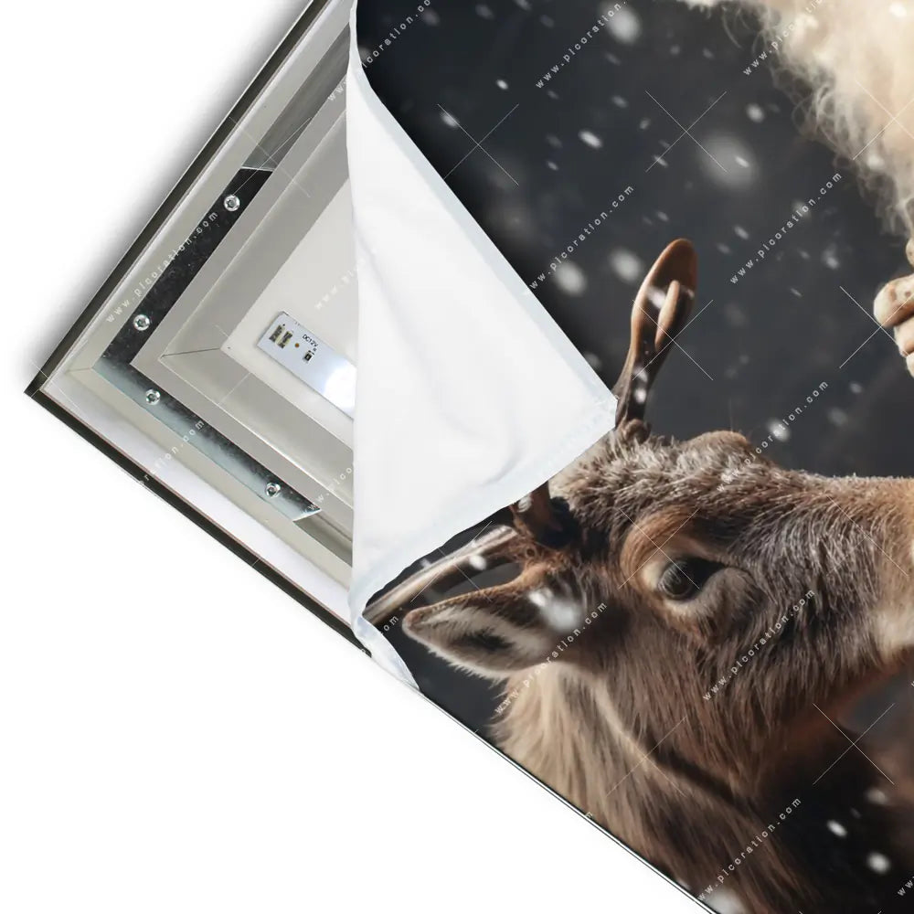 Charme und Flair mit Weihnachtsmann füttert Rentier als LED-Wandbild