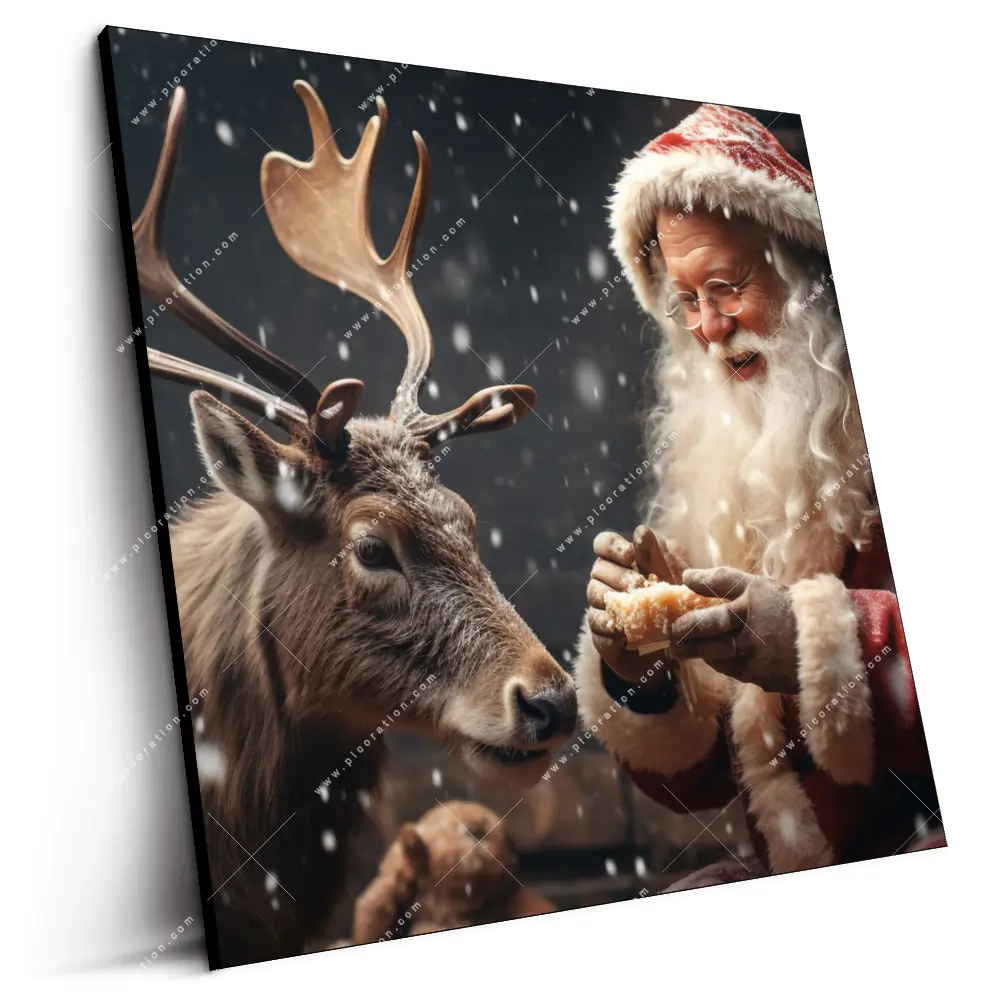 LED-Wandbild | Weihnachtsmann füttert Rentier | Quadrat