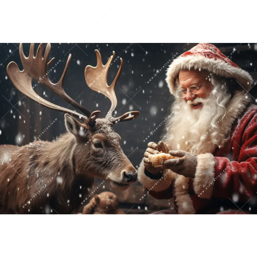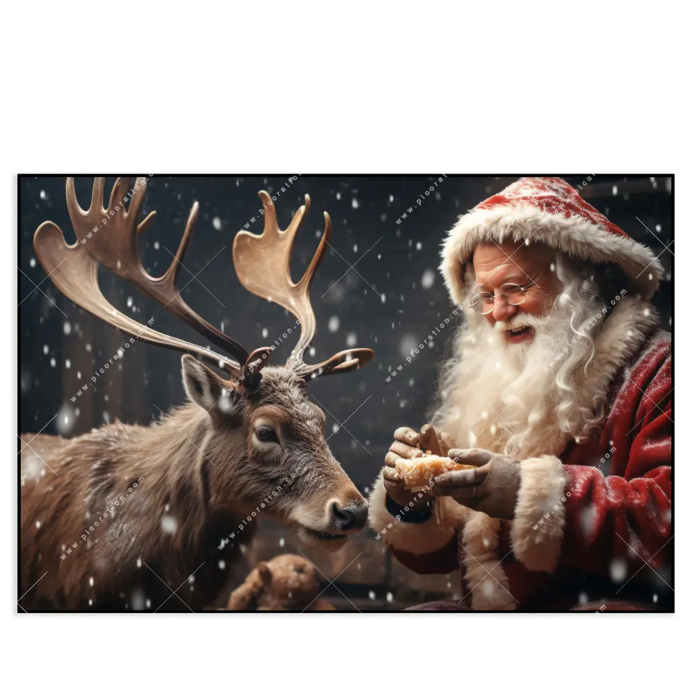 Ihr neues LED-Wandbild mit dem Motiv Weihnachtsmann füttert Rentier